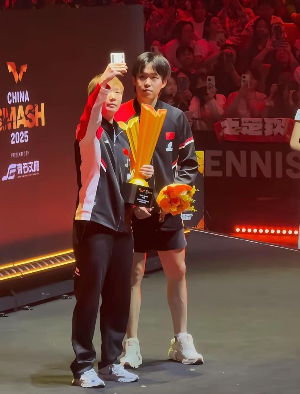 头哥直接撂话:“这手机谁爱拿谁拿!” 听着就一股子别扭劲儿,合着掌镜这事儿还挑人? 鳗鱼更直接,怼得毫不含糊:“当初就该把你俩丢国外去!” 这话里的调侃味儿都快溢出来了,明眼人都能瞅出点门道。 网友也跟着乐,直接开涮:“她又不是石景山!” 这话太戳笑点了——合着之前合照间距宽得能塞下石景山,现在换了人,距离立马正常了? 说到这儿就不得不提,要是这次女单冠军是莎莎,头哥能主动掌镜不?之前跟莎莎拍合照,他那股子雀跃劲儿藏都藏不住,嘴歪着、牙龇着,连腿都不自觉弯着,全是藏不住的放松劲儿。结果跟鳗鱼拍,立马变了个人,嘴不歪了、牙不龇了、腿也直了,整个人老实得不能再老实,这区别对待也太明显了吧! 最逗的是之前那合照,网友直接调侃中间空得能站个石景山,现在再看他跟别人拍的,哪还有那夸张间距?反差大得让人想笑。