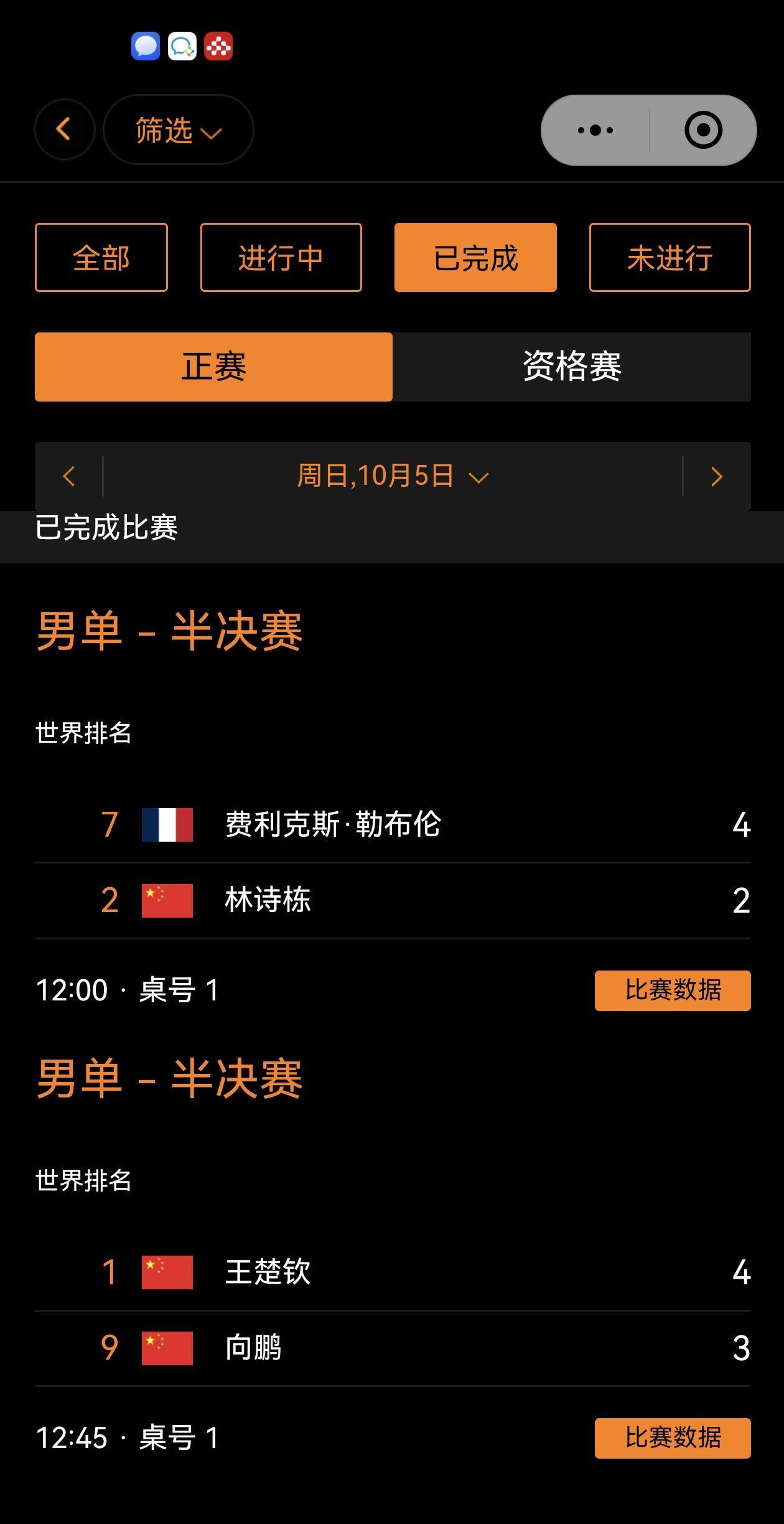WTT北京大满贯2025,10.5正赛第8天午场:收官之战,或超出预想的比赛,男