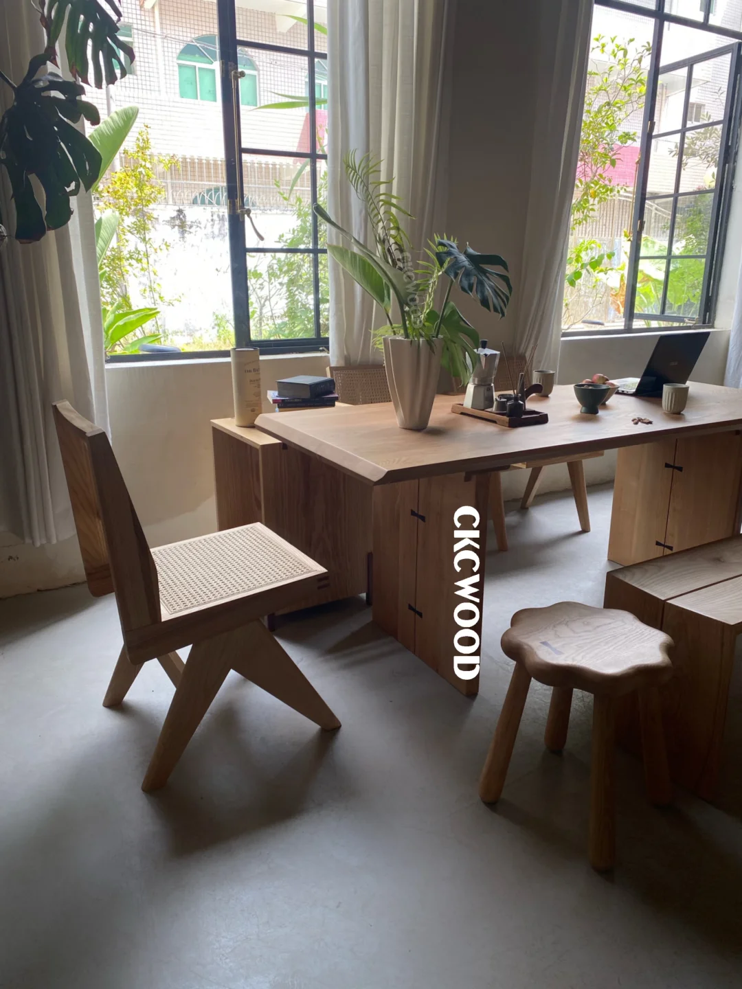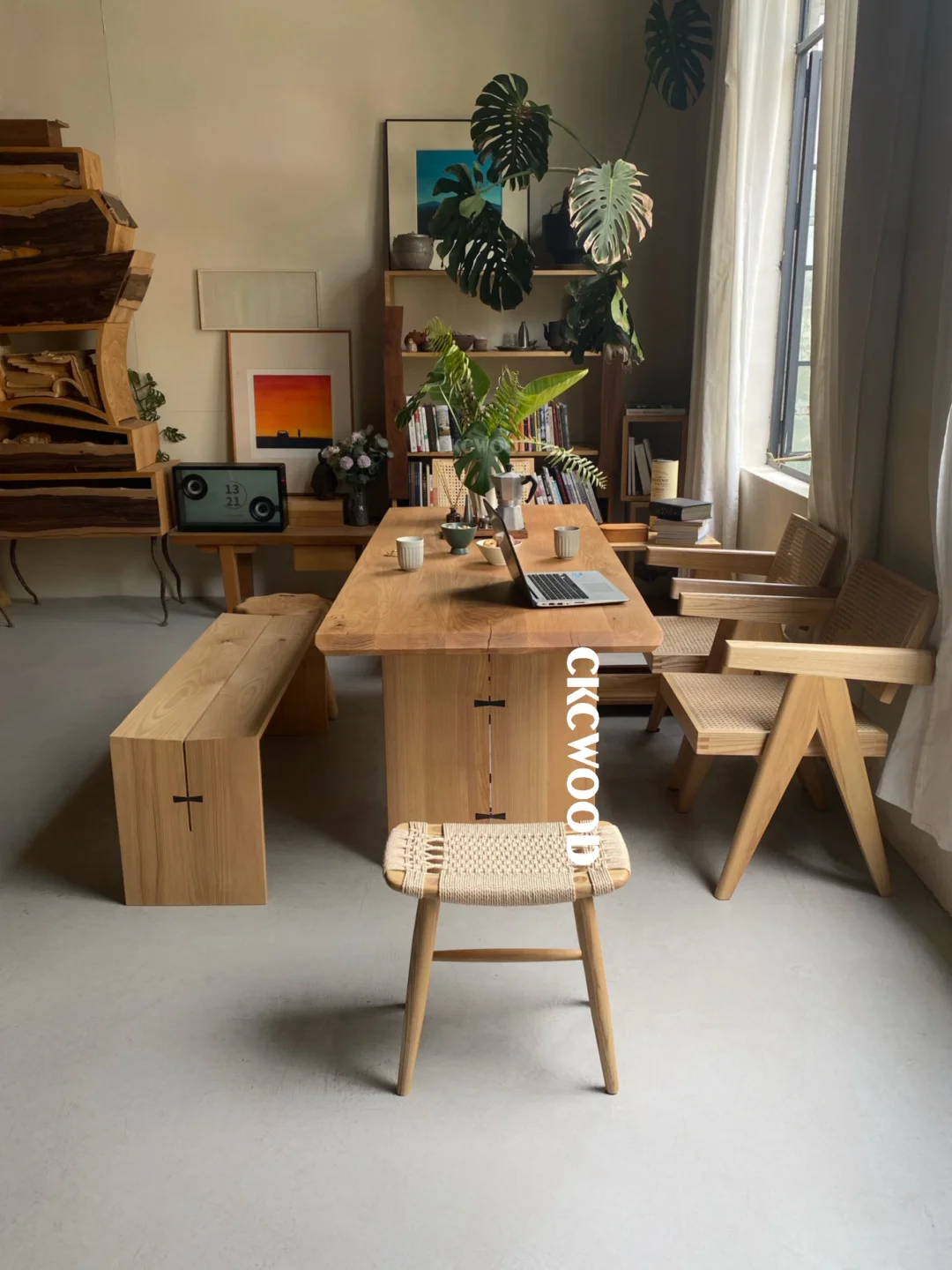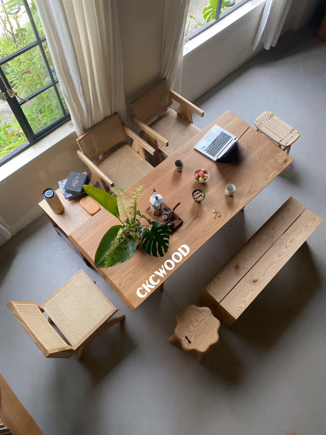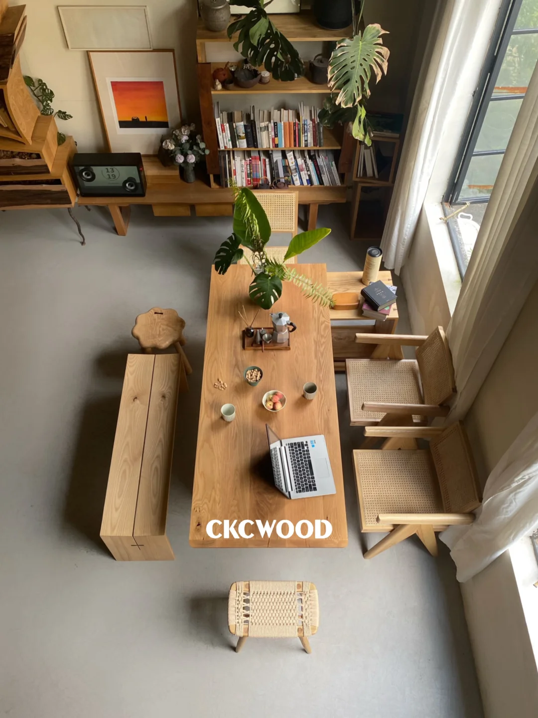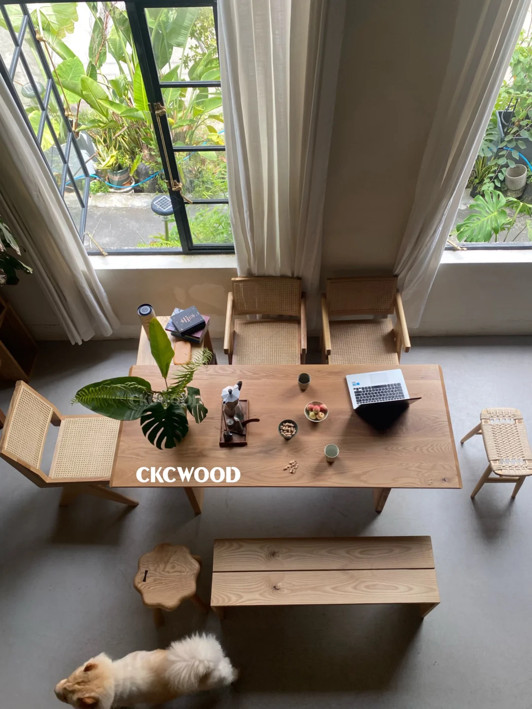 我把家里客厅清开|一张白橡木桌餐茶都在这