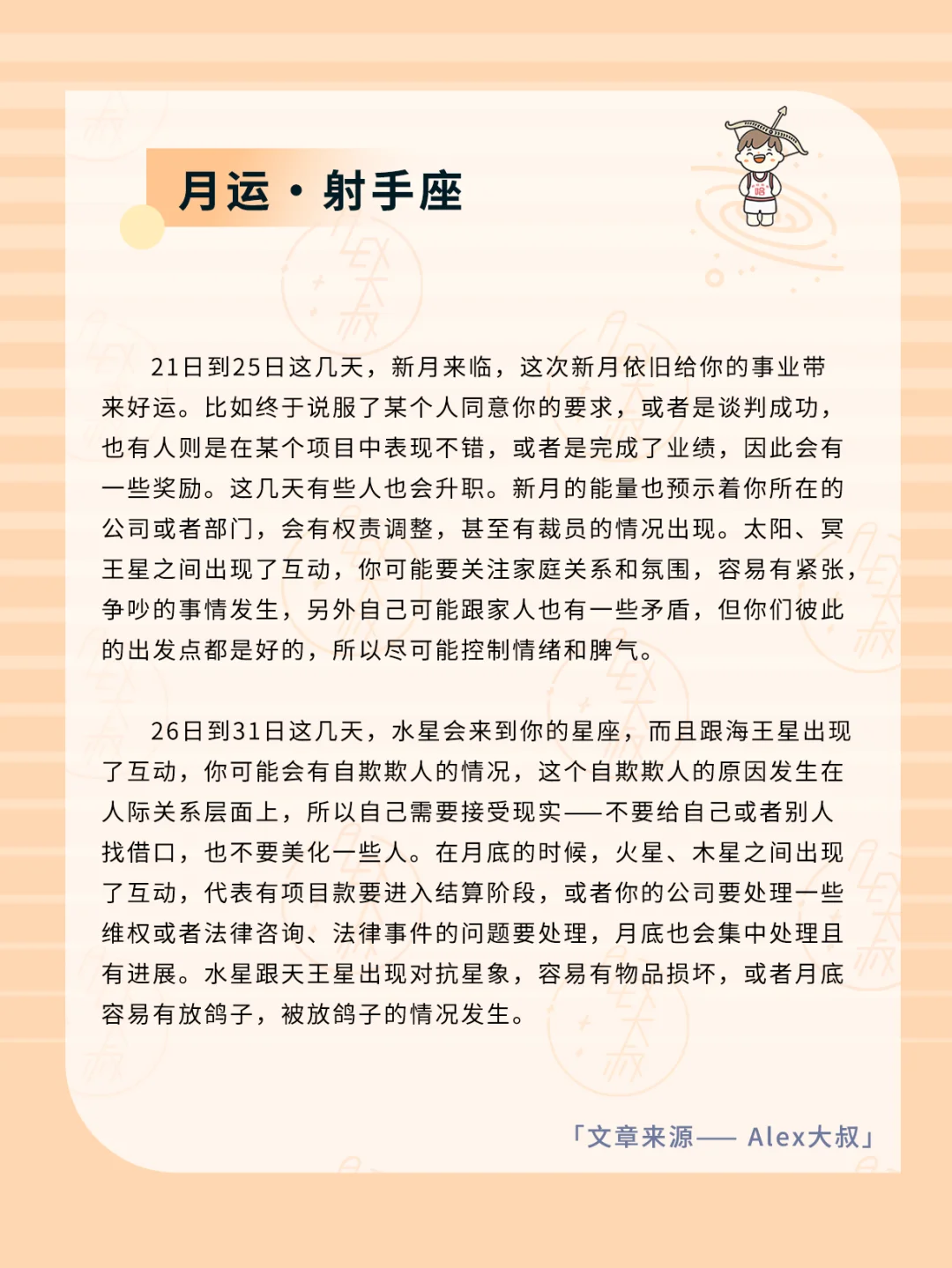 ALEX大叔 星座运势 我的星座 射手座运势 摩羯座运势