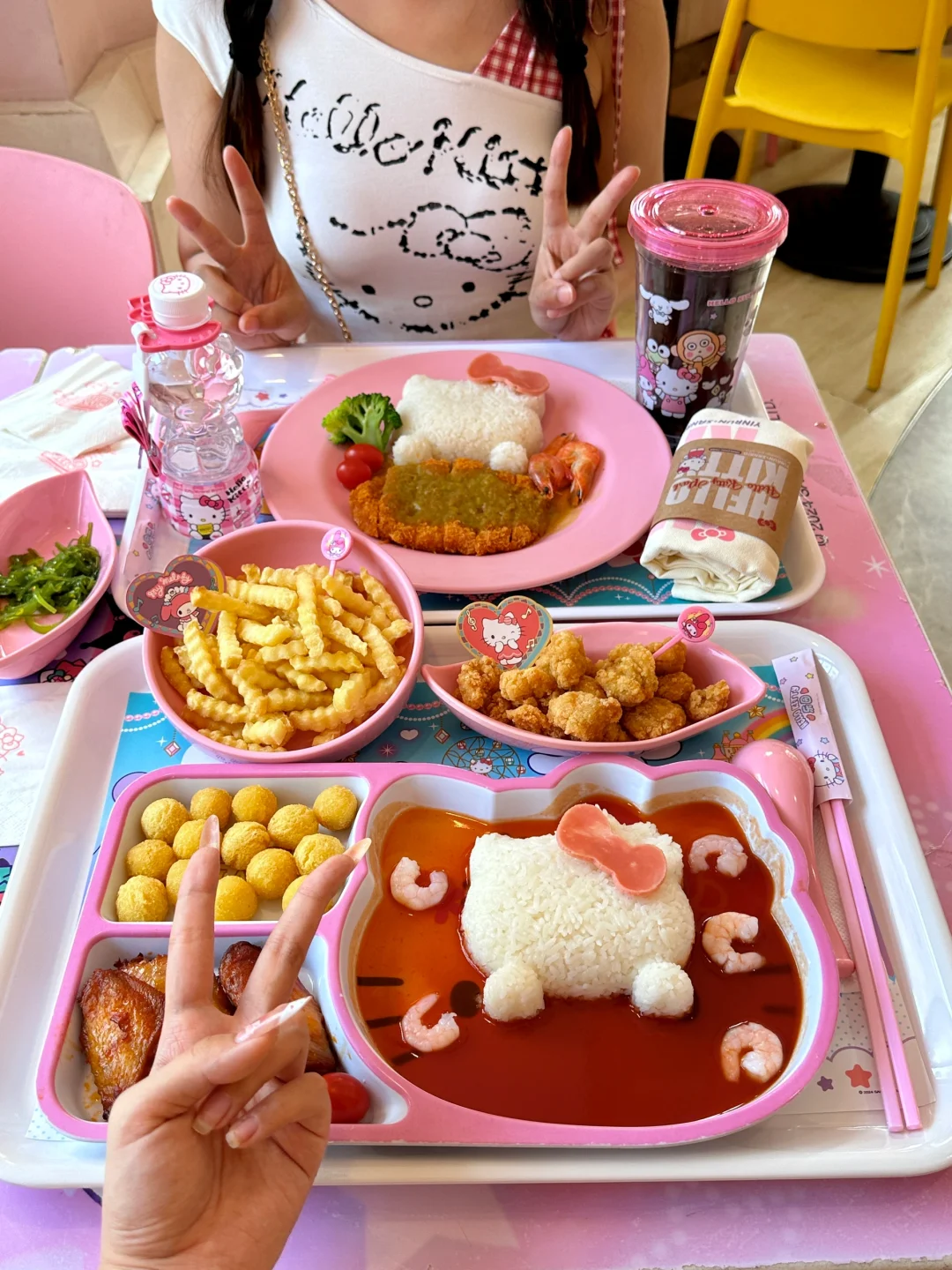 里面的餐厅不是很好吃,但是真的很好看,为颜值买单,买了套餐还送kitty 的杯子~