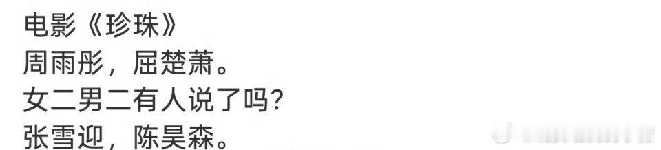 周雨彤是不是zyk?新电影《珍珠珍珠》男主屈楚萧和女二张雪迎粉丝开始内涵起来了