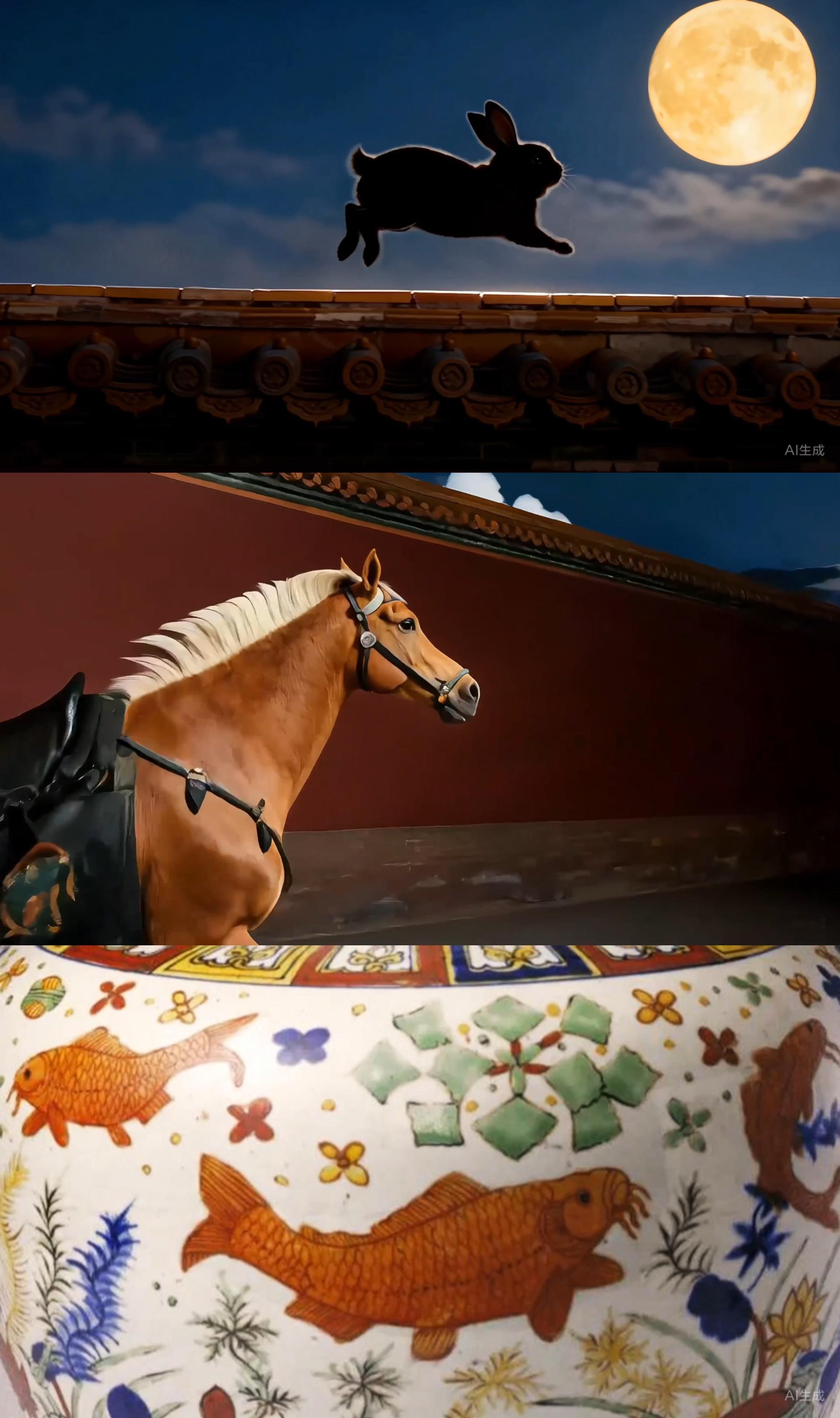 故宫文物陪我们过中秋中秋夜故宫好会整活!黑科技让国宝们“动”起来,珐琅更钟悬于云端报时,青花兔盘里的玉兔跃出瓷面在宫顶“撒欢”,陶犬、孩儿枕也都有了灵动模样,传统与科技碰撞,浪漫到心坎里!