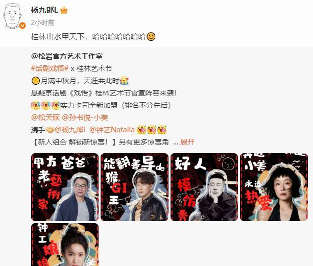 杨九郎又收到了话剧邀约,真是可喜可贺。杨九郎是郭德纲九字科徒弟,头九中排行四,与