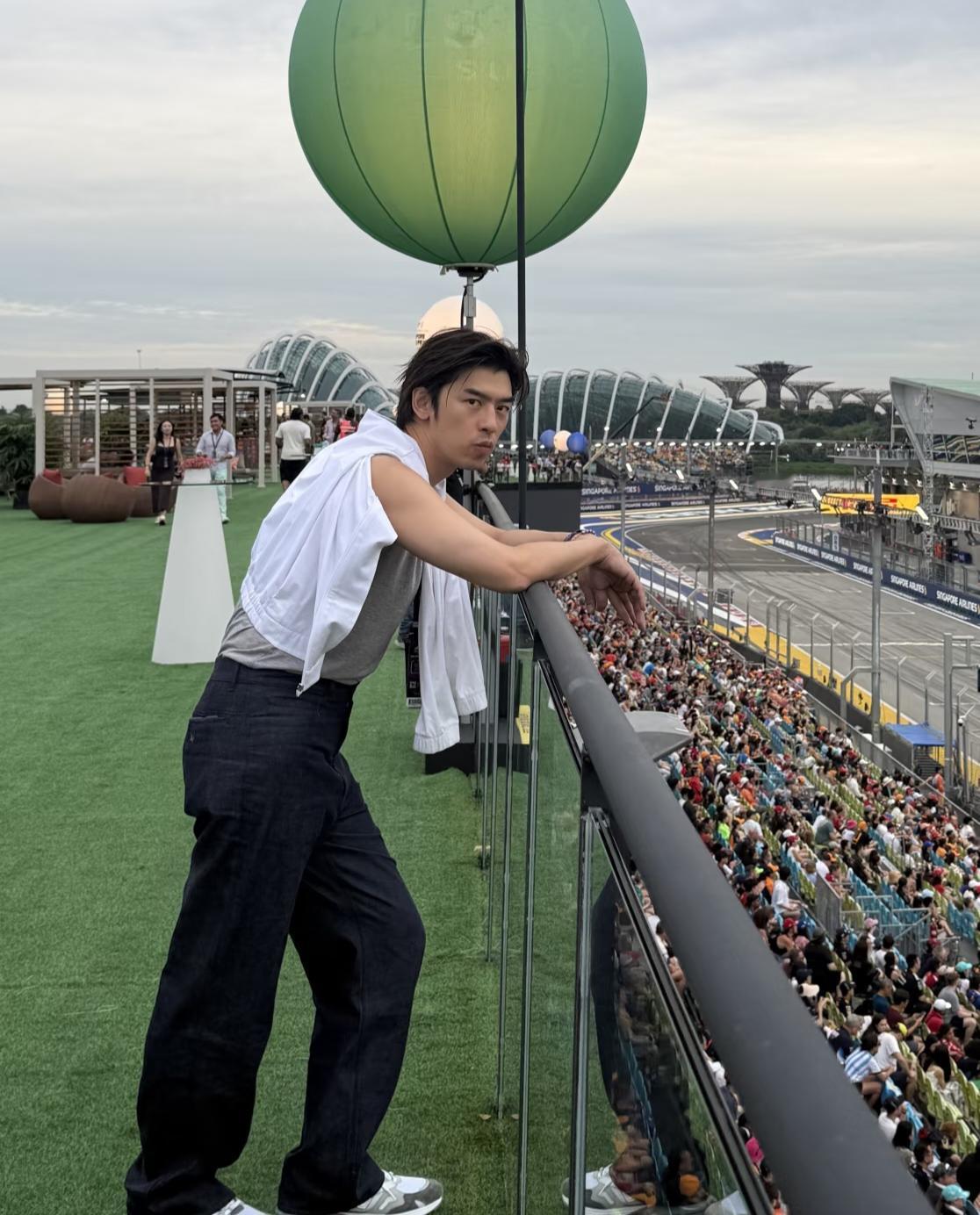 42岁陈柏霖现身新加坡看F1赛车,他的穿衣打扮很有型,身材高挑,气质终于不土了,