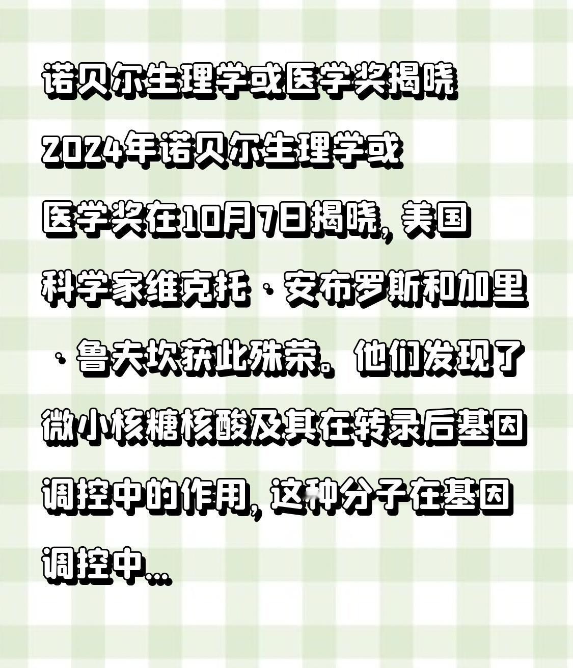 诺贝尔生理学或医学奖揭晓诺贝尔奖人人都说诺贝尔 2024年诺贝尔生理学或医学