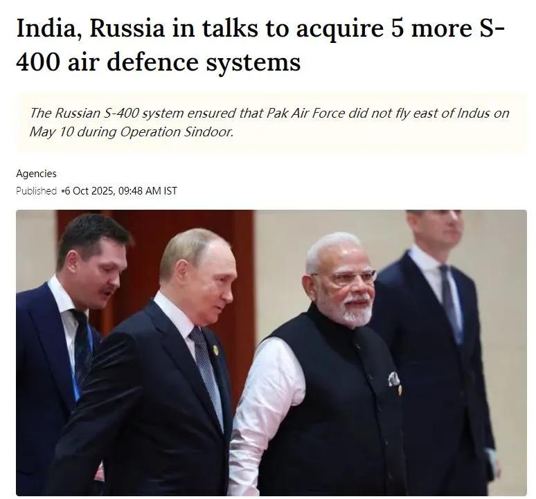 此前有关印度有意增购俄罗斯S-400“凯旋”防空导弹系统的报道已得到证实。据《印度斯坦时报》报道,印度政府计划拨款再购买5套S-400防空导弹系统。 据印度军方消息人士透露,印度国防部与俄罗斯国防工业代表计划于本周举行会谈。预计会谈将讨论直接购买更多S-400防空导弹系统或在印度联合生产S-400防空导弹系统。印度希望在普京12月访印之前达成相关协议,然后等普京访印时正式签署合同。 印度军方表示,印度需要增加5套S-400防空导弹系统才能覆盖印度长达7000多公里的海岸线,并填补北方司令部所辖地区的防空系统空白。之前,印度国防部曾不止一次表示,在5月的印巴冲突中,俄制S-400防空导弹在击退巴基斯坦空袭方面表现出色,发挥了关键作用。也正是在印巴冲突之后,印度开始就再度采购S-400与俄方进行初步谈判。