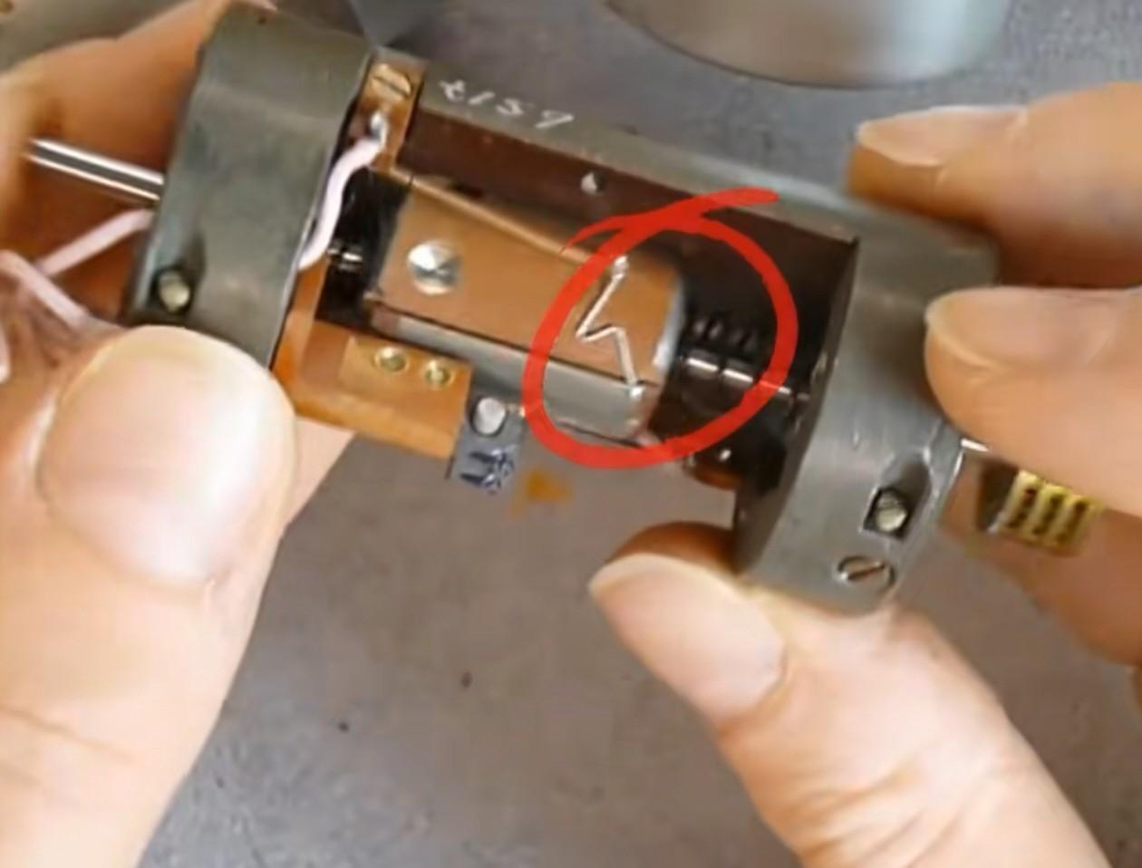 这是一组前苏联空空导弹导引头照片,拆开一个角速度传感器,它里面有一个轴向转动的飞轮,属于单自由度陀螺仪。陀螺仪工作时旋转运动力矩作用于另一头的读取机构,并带动指针偏转,指针通过一个滑动变阻器输出角速度测量信号。因为它是单向陀螺仪,控制机构只能获得横向和俯仰参数,导弹纵轴方向的运动由它另一个陀螺仪读取控制。 在这个导引头中还有加速度计,它的原理十分简单,就是滑动变阻器加弹簧,其中滑动变阻器固定端的那根接线清晰可见,两个加速度计上标明它的最大量程15g。 这些电子控制部件技术上很老旧,但是做工及质量非常好,许多年过去了,毫无生锈的痕迹,说明材料都是不易生锈的贵重金属。