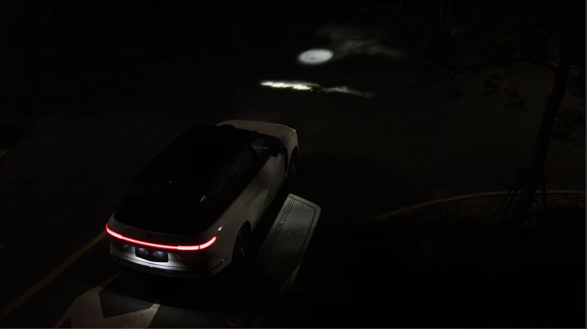 蔚来全新ES8采用了全栈⾃研的智能⾼清投影⼤灯,不但可以整活自定义显示,还能通过硬件能⼒提升、近光增强技术、MicroLED芯⽚,实现更亮、更准、更安全。