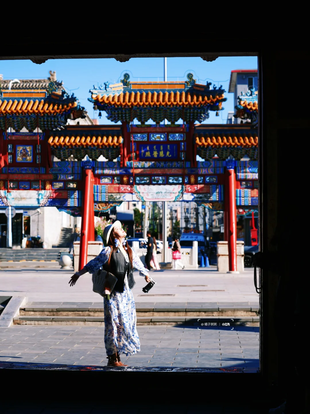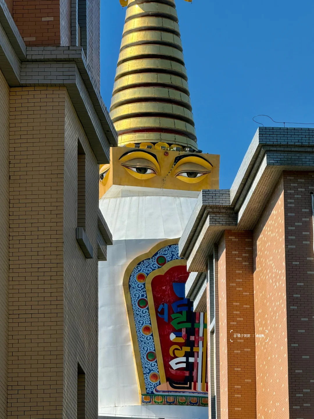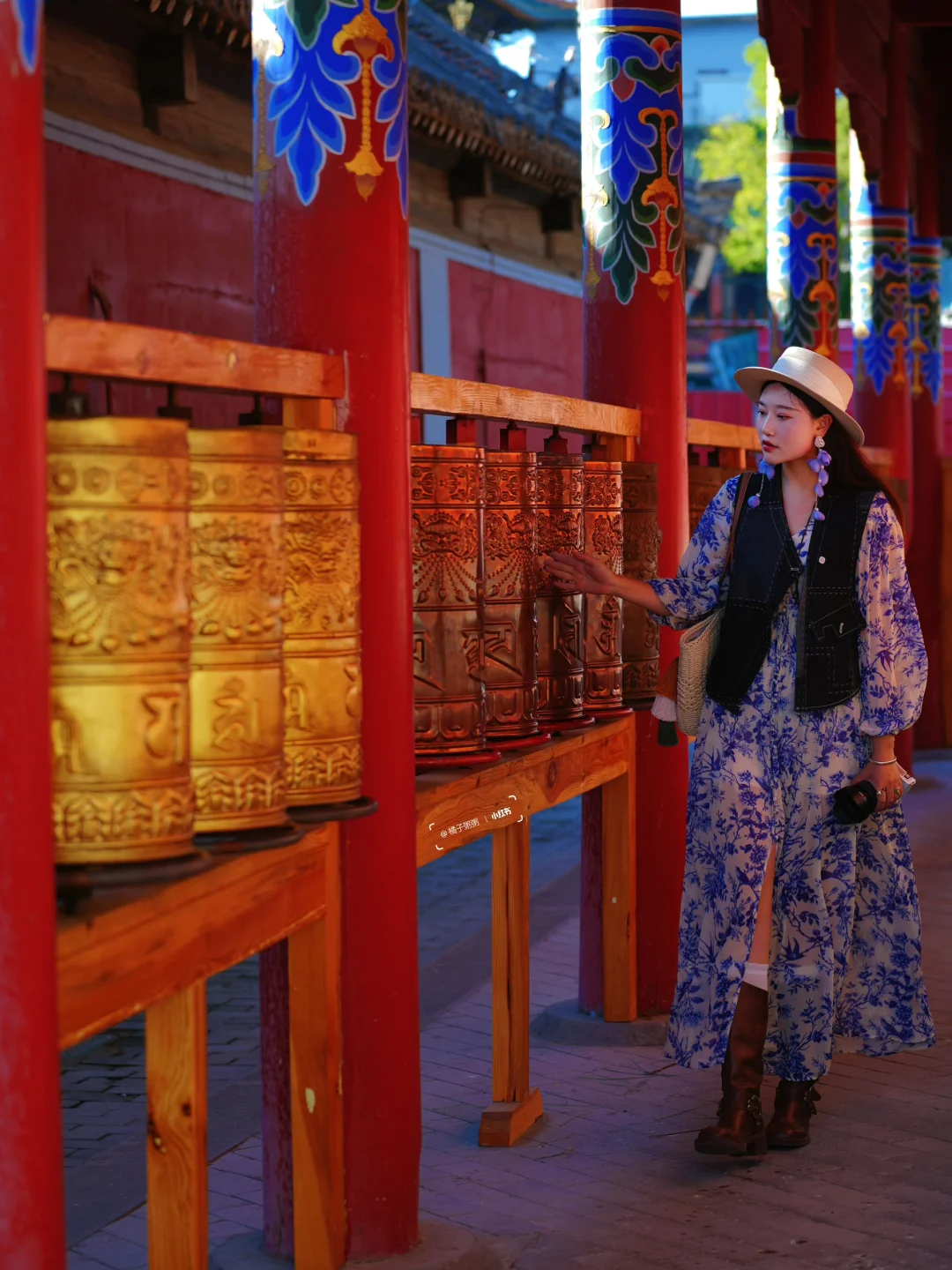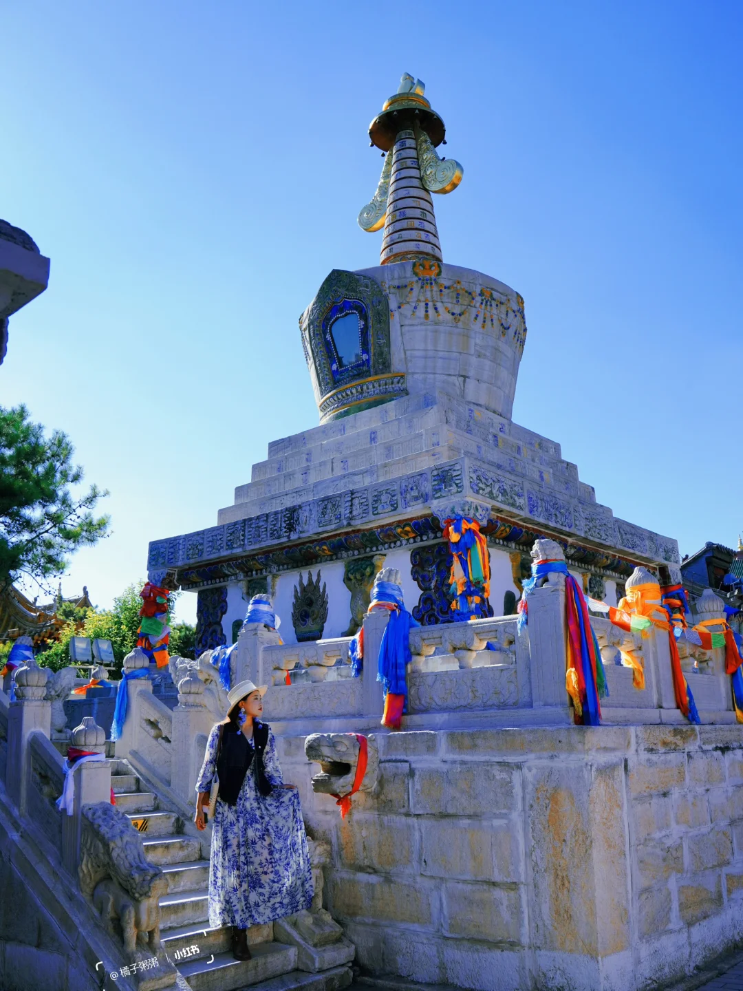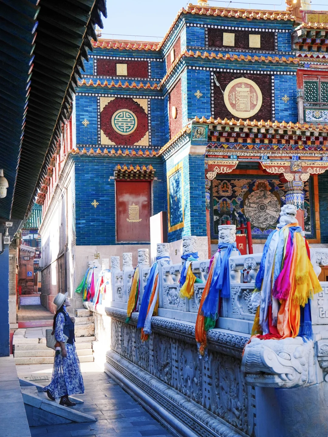 当地人口中的小召,有转经筒长廊和白塔,蓝色建筑很有特点!