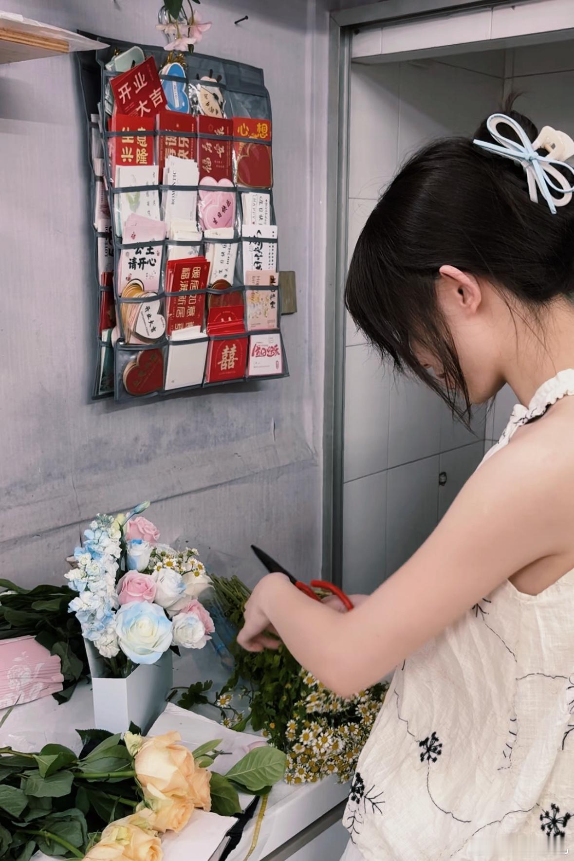 买原材料,制作信封包装,到花店自己挑选、搭配、插花