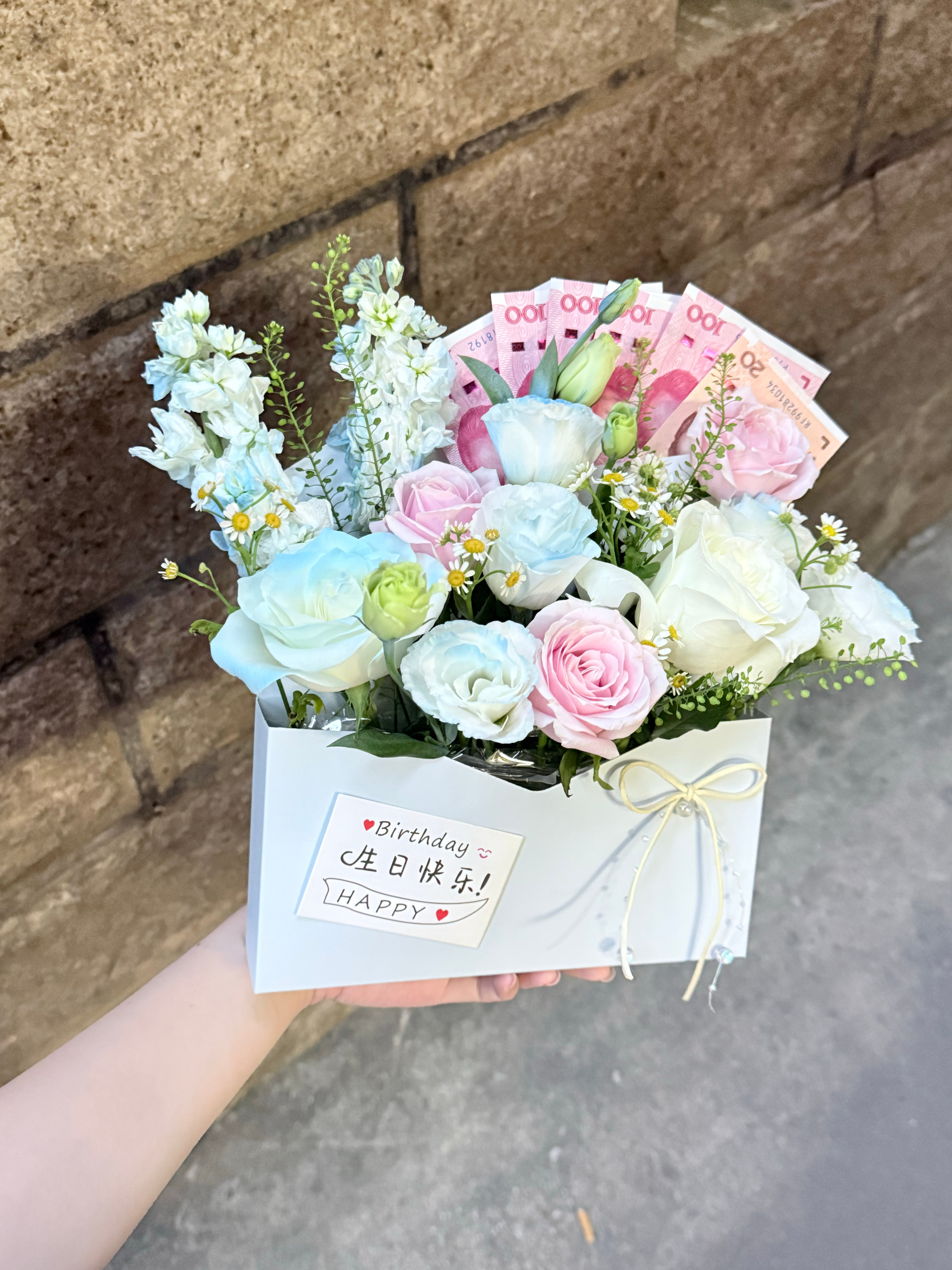 📍近日叫我插花小能手自己做的信封花,还给妈妈随了520元夹在一起买原材料,制作