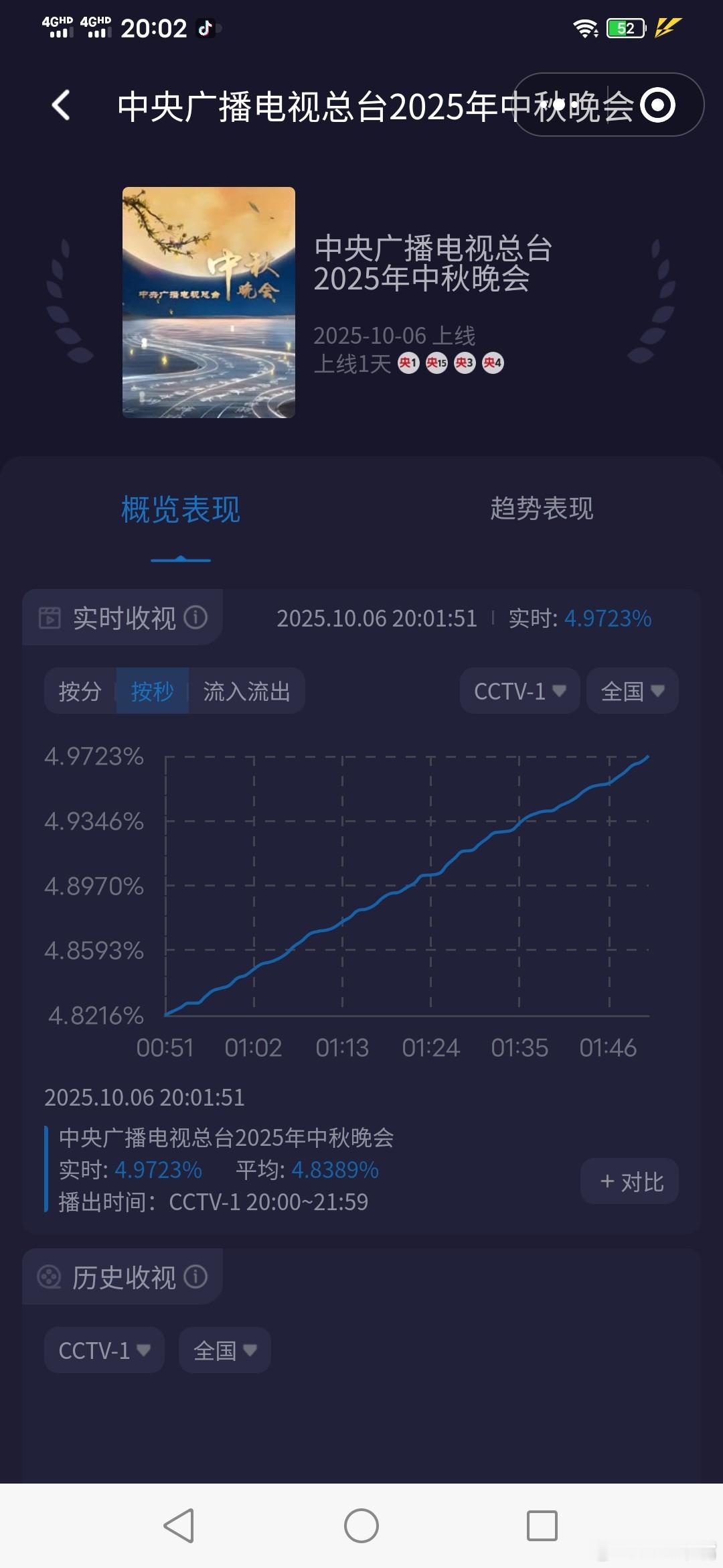 央视中秋晚会收视率爆了!酷云起点4.8,看看今年能不能破7?参考去年起点3.91,峰值5.97![doge]