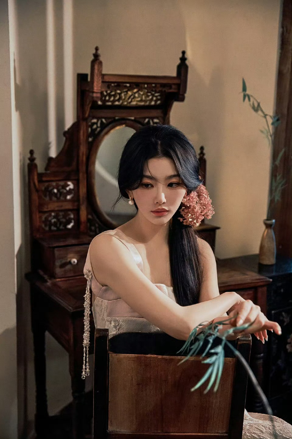 孔雪儿这波新中式造型太绝了!淡妆配粉色吊带裙,气质温婉又典雅,妥妥从古画里走出来的东方美人,真的爱住了![爱慕]