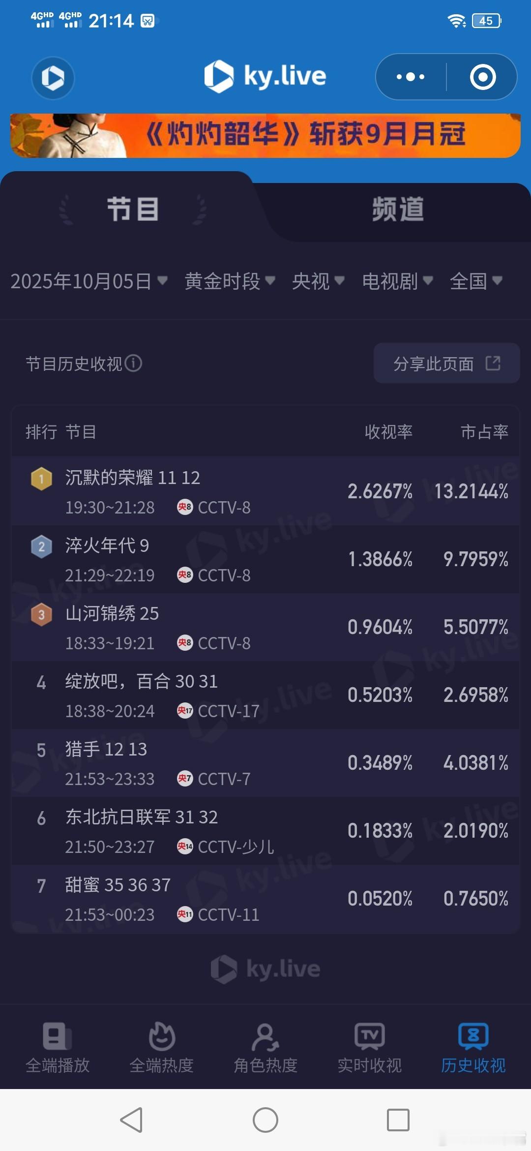 沉默的荣耀10月5日cvb收视日报,沉默的荣耀和许我耀眼创新高了!![good][good][鼓掌]