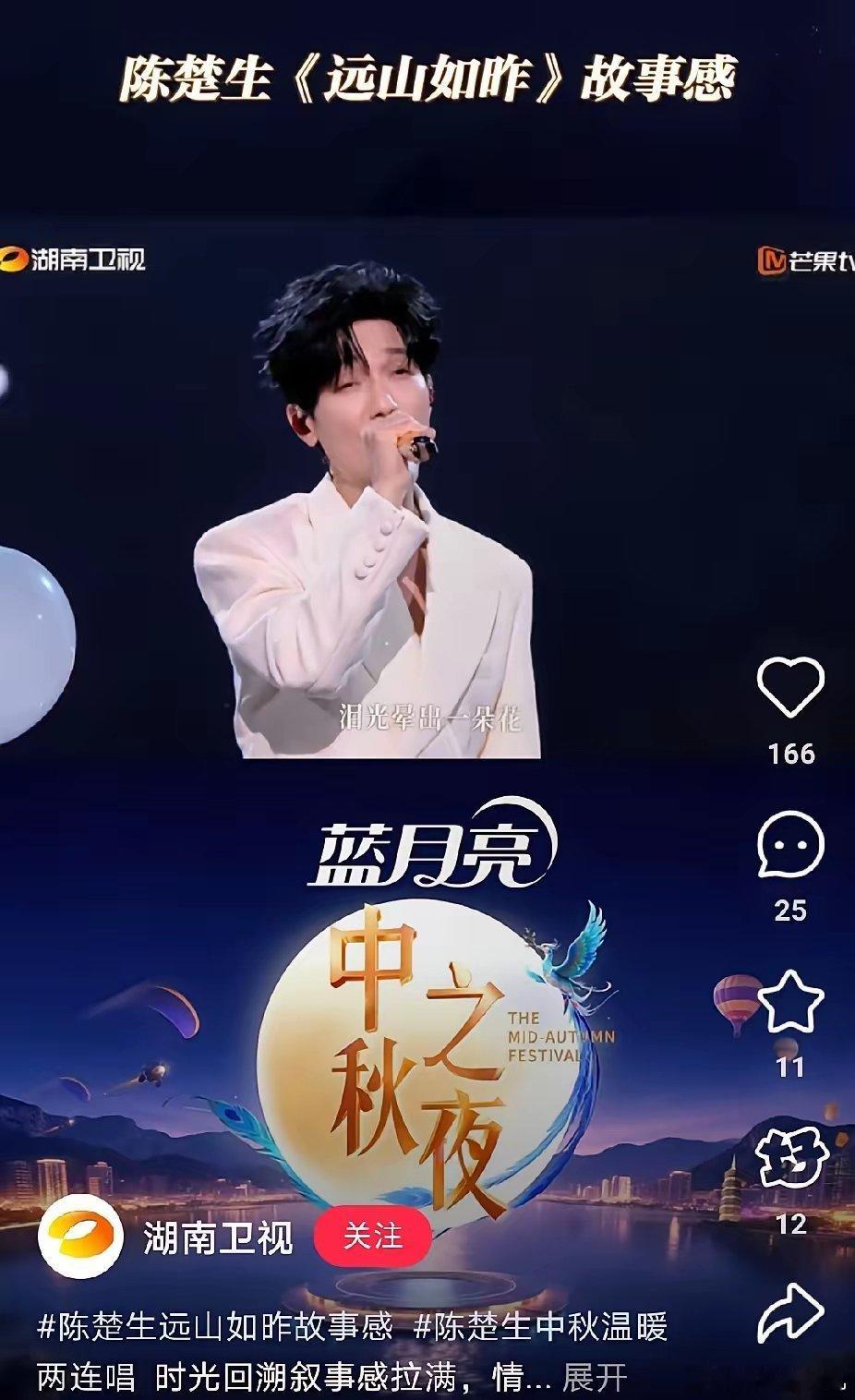 细细数了一下,确实不得了!陈楚生就是芒果台亲儿子吧,这次已经是三登芒果秋晚压轴了!他的唱功不能说难听,而是非常好听,把两首歌把思念唱进月光里了。