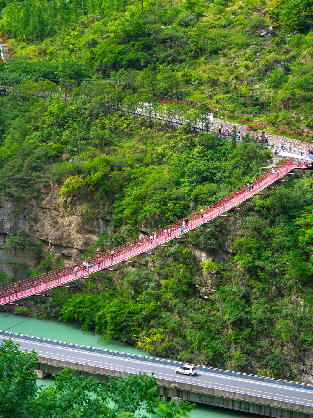 过了景区大门口往前开就到了水上公路,直接导航铁道兵博物馆暂未开放,可以去同心桥上360度俯瞰整个峡谷奇观,仿佛置身于奇幻的仙侠场景让人震撼