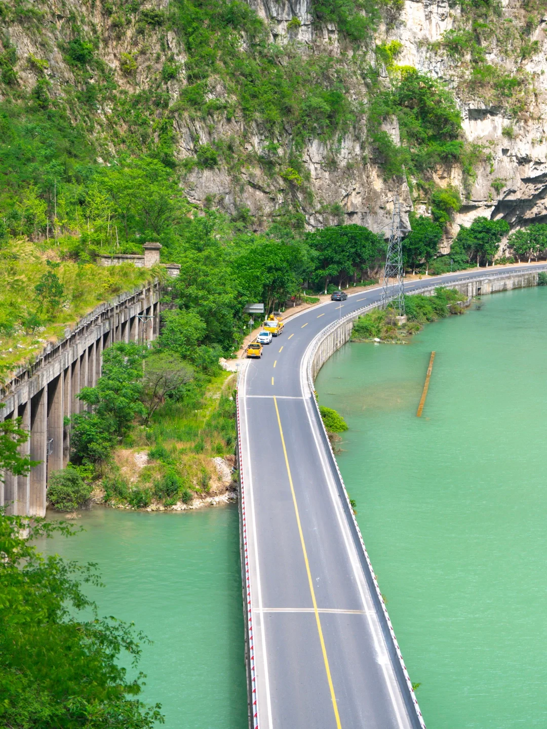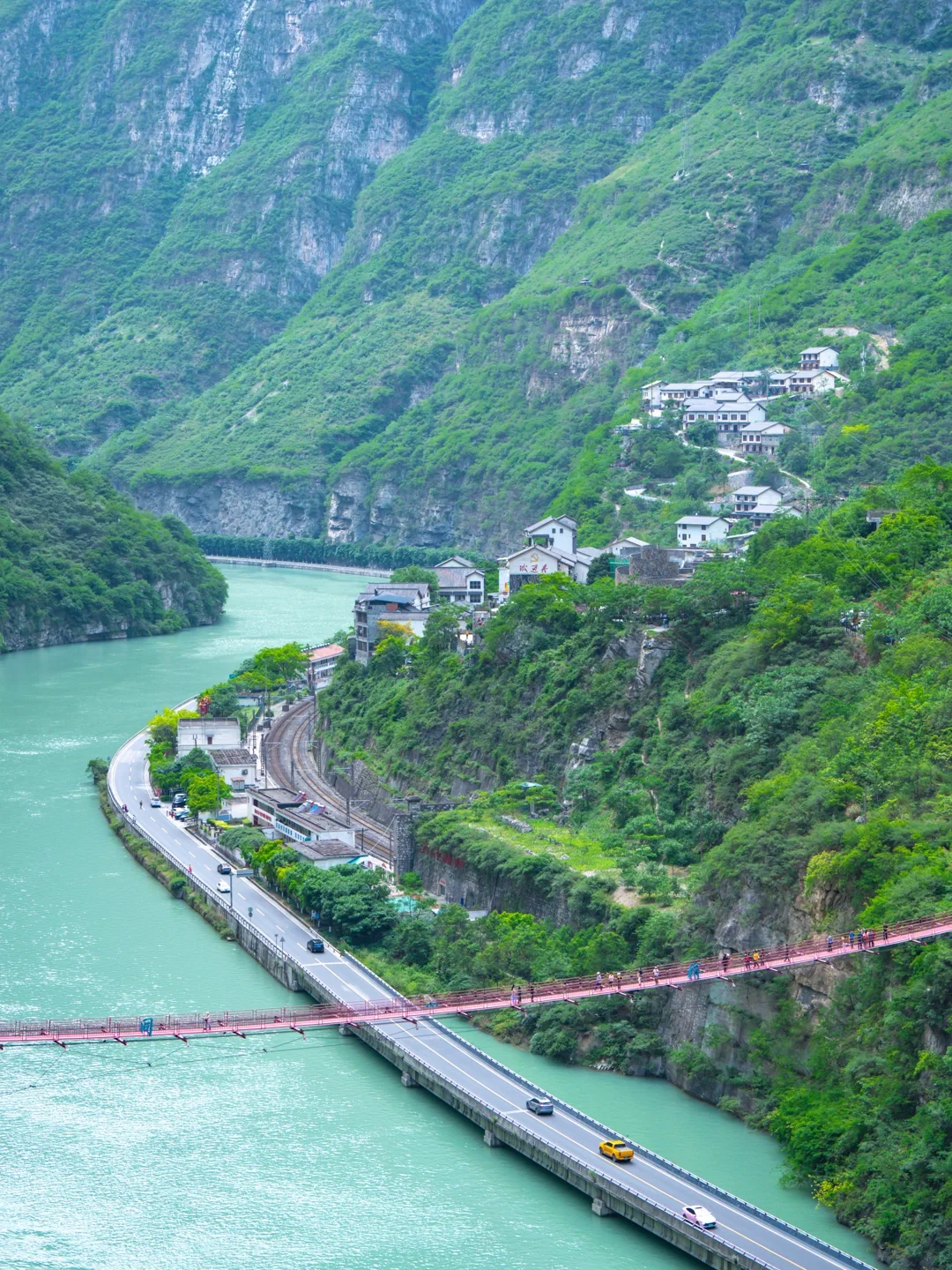 ️1⃣️金口河大峡谷:这里两侧是陡峭的悬崖峭壁,中间是清澈河流和一条蜿蜒曲折的水上公路,让人不襟感叹大自然的鬼斧神工,车流在峡谷间穿行,与绝壁深谷连为一体,令人目不暇接,叹为观止,有 “地质天书,旷世幽谷”的美誉。