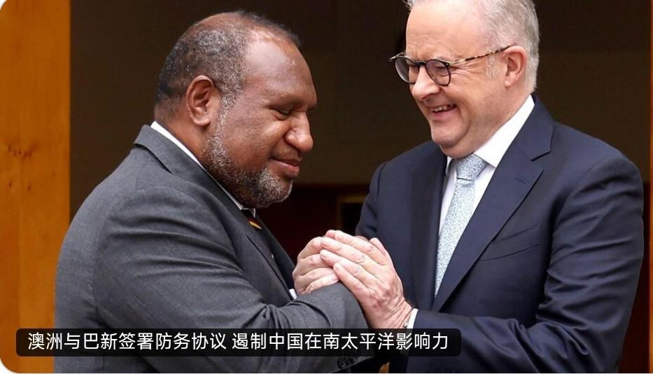 澳大利亚与巴布亚新几内亚签署历史性防务协议,深化南太平洋安全合作(堪培拉综合讯)10月6日,澳大利亚与北方邻国巴布亚新几内亚在堪培拉签署了具有里程碑意义的“Pukpuk条约”,旨在加强双边安全合作,共同应对地区挑战,并遏制中国在南太平洋日益增长的影响力。这一协议标志着澳大利亚70多年来首次签署此类防务协定,也是巴布亚新几内亚首次与他国达成类似协议。据路透社、彭博社和美联社报道,澳大利亚总理安东尼·阿尔巴尼斯(Anthony Albanese)与巴布亚新几内亚总理詹姆斯·马拉佩(James Marape)在澳大利亚议会大厦共同签署了该协议。条约核心内容规定,若一方遭受武装攻击,另一方将提供军事援助,联手对抗威胁,类似澳大利亚与美国、新西兰的ANZUS条约。此外,协议允许多达1万名巴布亚新几内亚公民加入澳大利亚国防军,并推动两国军队在装备、训练和人员上的深度整合。阿尔巴尼斯在签约仪式上表示,该协议基于两国地理相近、历史相连以及共享邻里关系的现实,旨在维护南太平洋地区的和平与稳定。他强调,协议将促进双边经济与安全合作,为地区繁荣奠定基础。马拉佩则表示,该协议并非针对任何地缘政治对手,而是“保护家园的围栏”,并重申巴布亚新几内亚奉行“与所有人为友,无敌对者”的外交政策。然而,该协议引发了中国方面的关切。中国外交部认为,协议“不公平地针对”中国,可能加剧南太平洋地区的紧张局势。分析人士指出,澳大利亚近年来积极加强与太平洋岛国的防务联系,部分是为了回应中国在该地区的基础设施投资和外交影响力扩张。协议签署后,需经两国议会批准方能生效。外界普遍认为,这一防务合作将显著提升澳大利亚在南太平洋的战略地位,同时为巴布亚新几内亚提供军事和经济支持,深化两国长达数十年的友好关系。