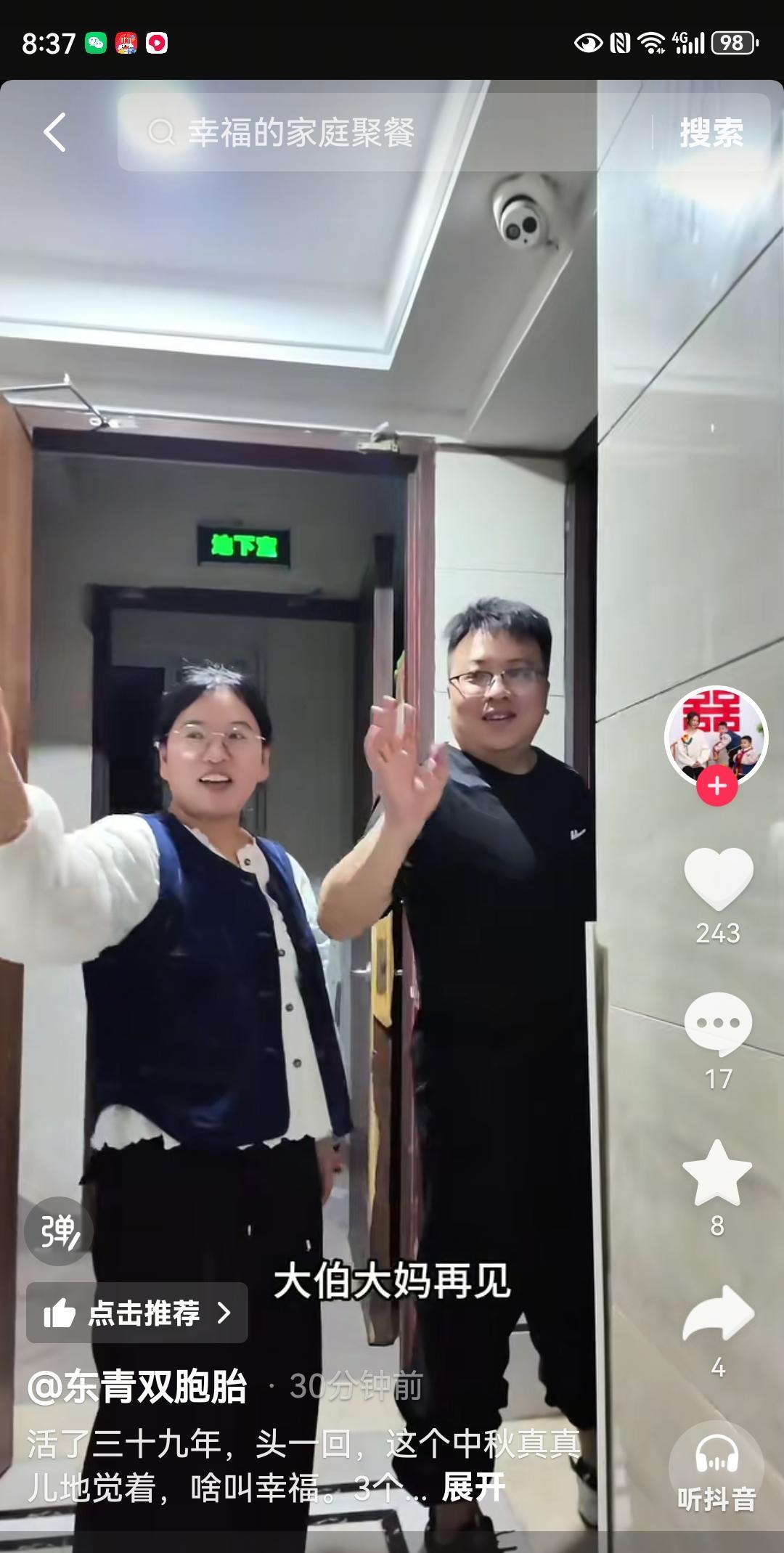 中秋节,二姐家里大团圆。 二姐以为家里就他们一小家五口人过节,结果瑞哥告诉她老爸