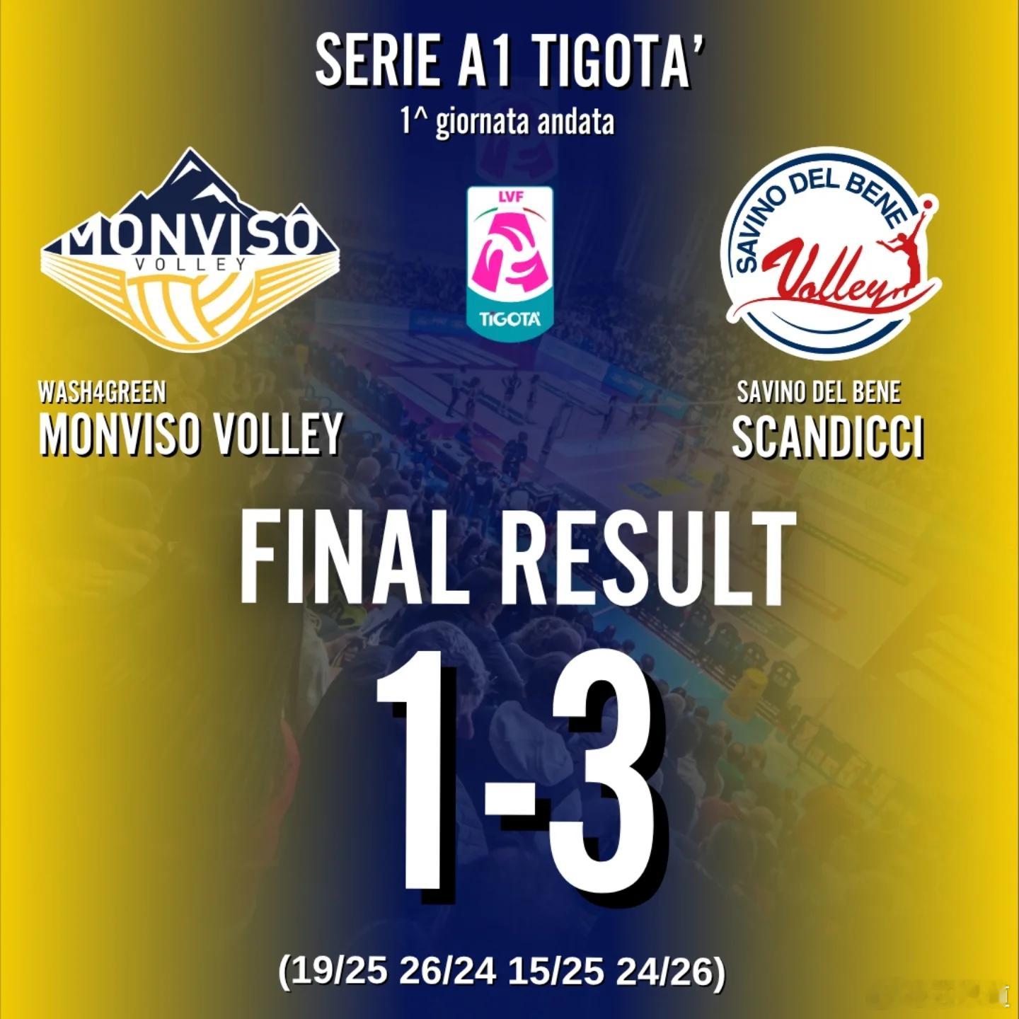 国际排坛动态艾格努[超话]2025-26赛季女排意甲联赛常规赛第一轮完全战果