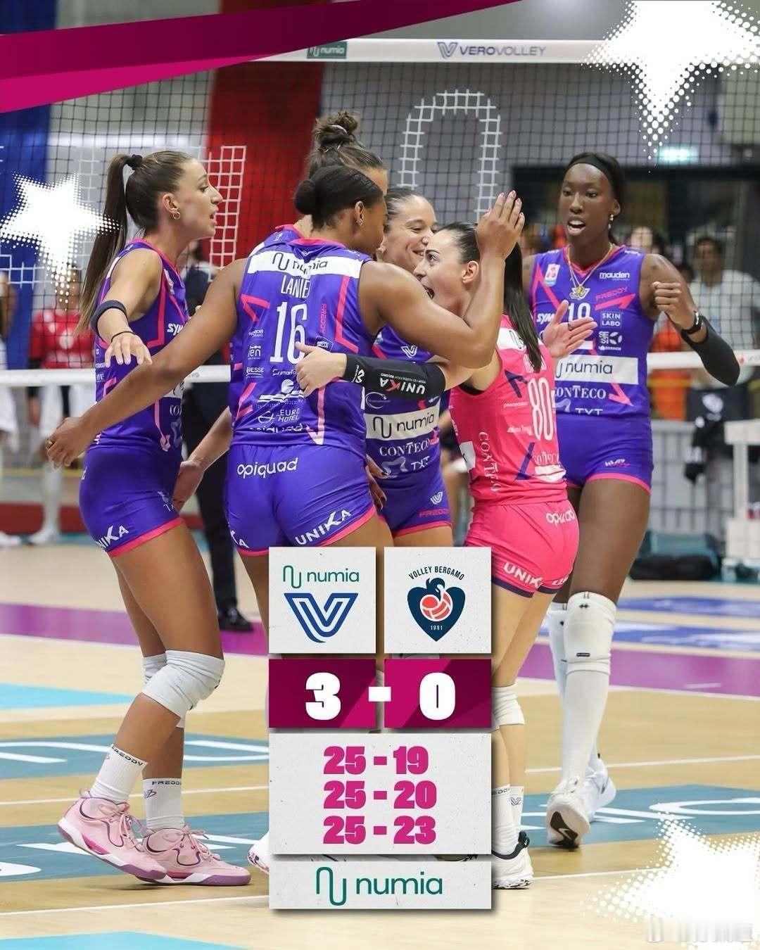 诺瓦拉 3-0 (25-16/25-23/25-23) 圣乔瓦尼;MVP:托洛克(卡多奇金娜) 16分、石川真佑3分