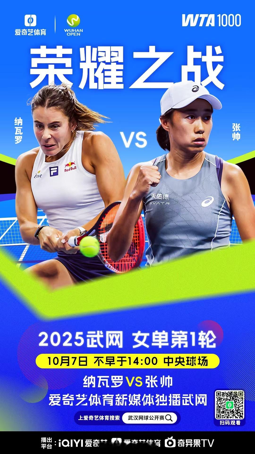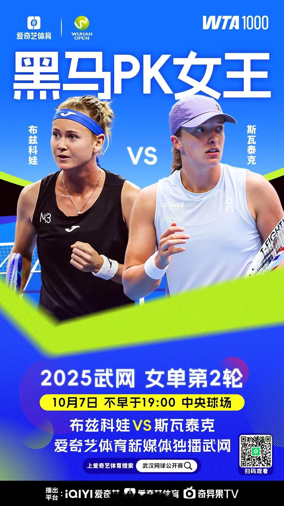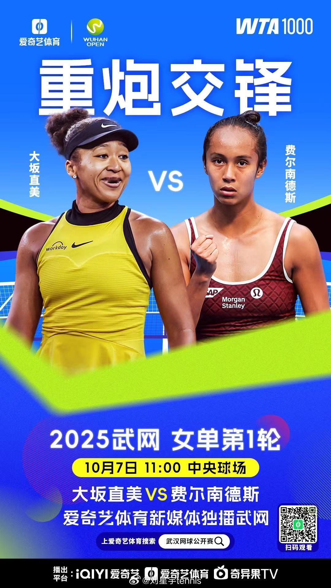武汉网球公开赛 今日赛程,我会在解说今天日场的三场比赛。武汉的签表规模不大,但是其实特别不好打,从第一轮开始就是强强对决,每一场都足够精彩。