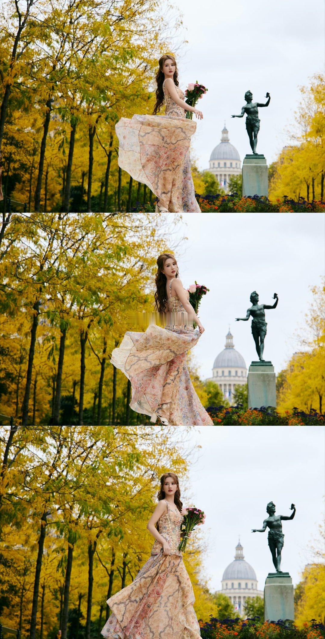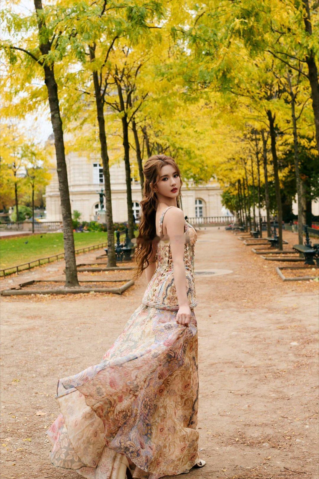 刘些宁秋日油画里走出的美人随意坐在公园长椅,秋风拂动发丝,她低头浅笑的瞬间,像