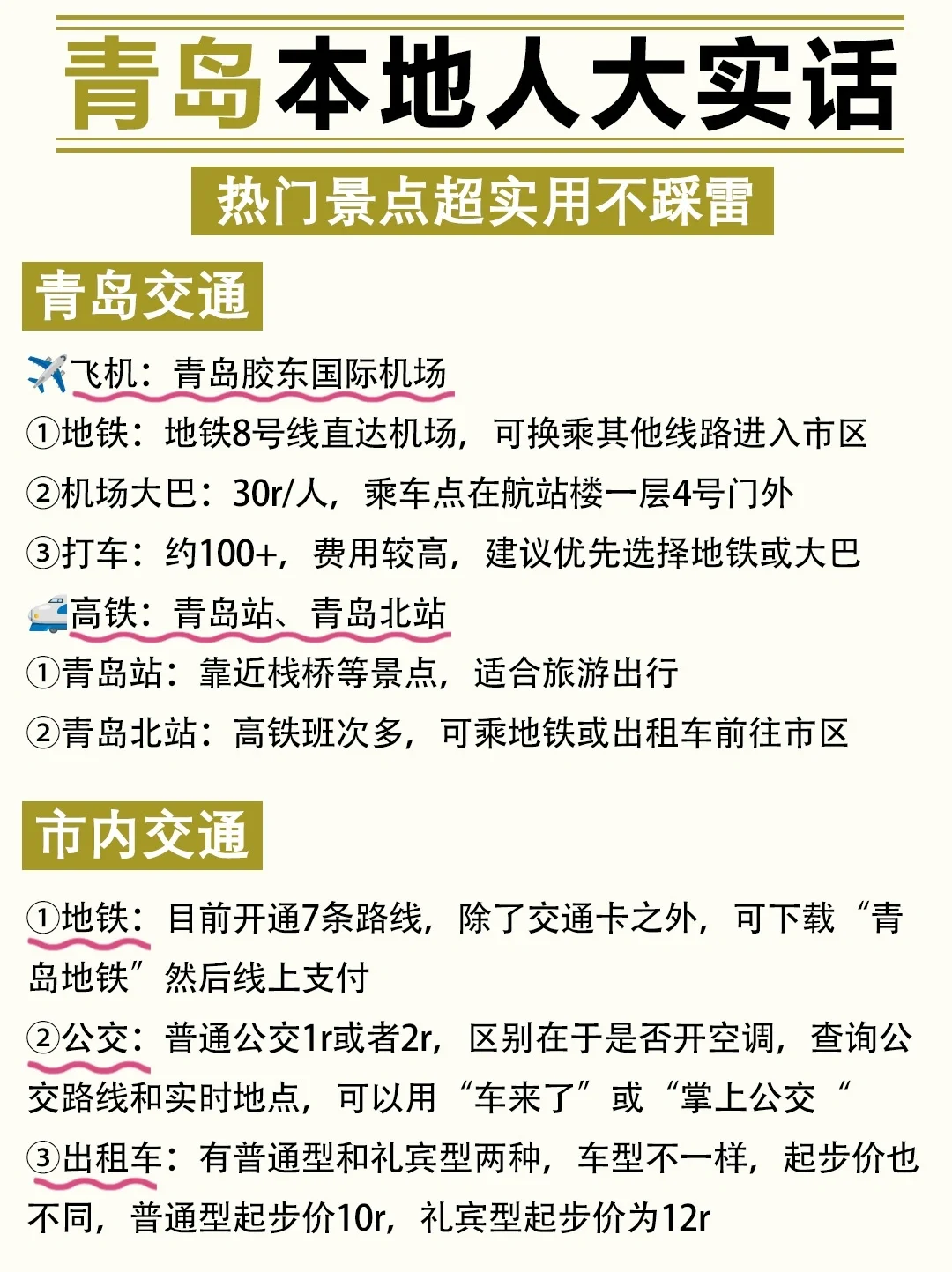 ✅地铁:目前开通7条路线,除了交通卡之外,可下载“青岛地铁”然后线上支付