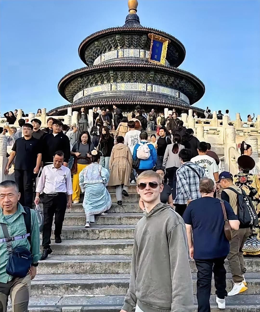 10月6日 世乒联大满贯赛(中国站)比赛结束后,法国球员小勒布伦,来到北京天坛公园游览参观。在男单决赛中,王楚钦4:0战胜了他。看来他没有受到比赛结果的影响,心情还是不错的。