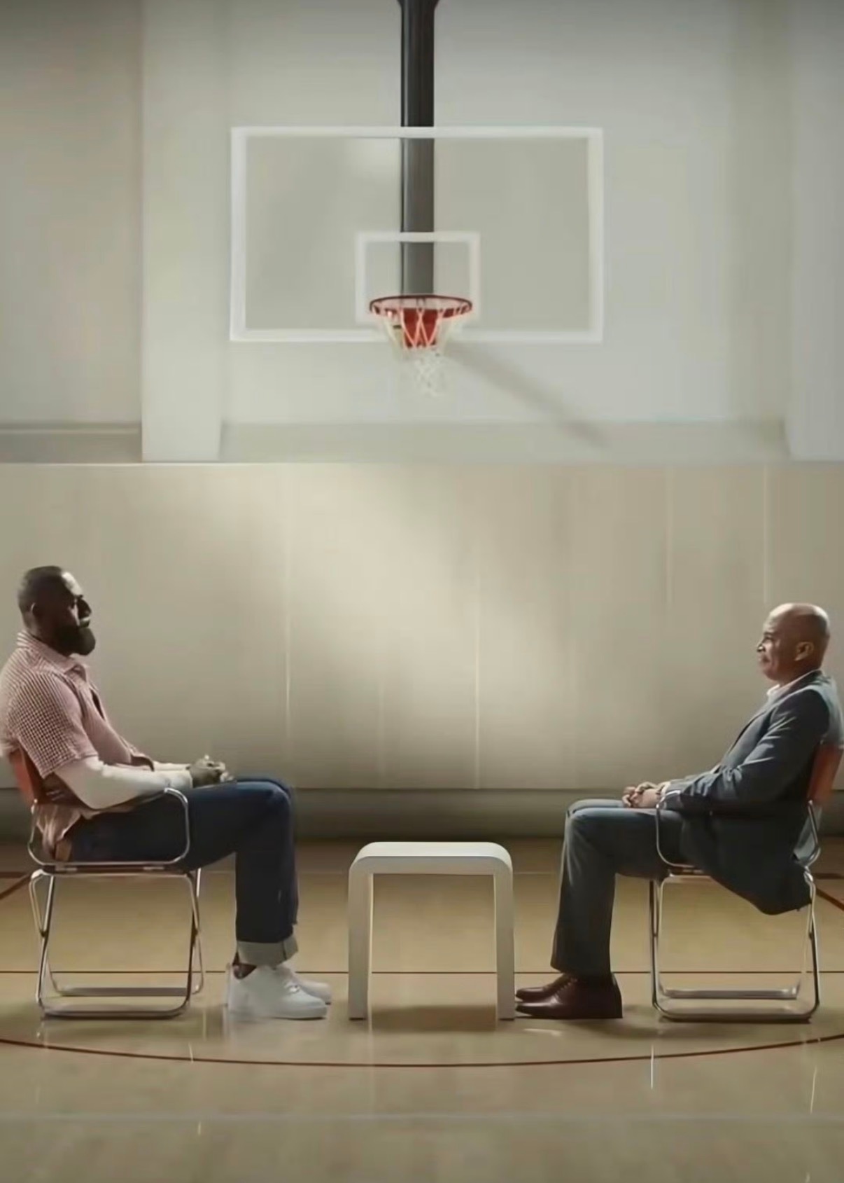 值得一提的是,老詹决定2.0中穿的衬衫和决定1.0是一样的。