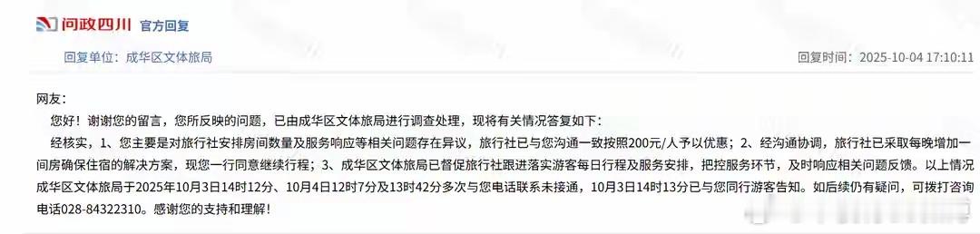他表示,后续旅行社已增加房间,并承担了另外增加一间房的房费。热点观点
