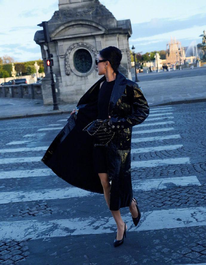 最近周迅去出席时装周了,她这回穿了一身黑色的衣服,看起来特别的酷。 周迅里面穿黑色裙子,秀出了完美的身材曲线,气质超好。 她脚踩黑色高跟鞋,还特意把头发挽了起来,还戴着黑色的墨镜,真的是太有气势了。 周迅这回大秀美腿,走路带风,整个人显得很有国际大牌明星魅力。 她外面披着一件亮面皮衣,看上去非常的有风度,像个潇洒的机车女郎。 周迅拎着黑色的迷你包,增添了高贵感,还很有优雅风情。
