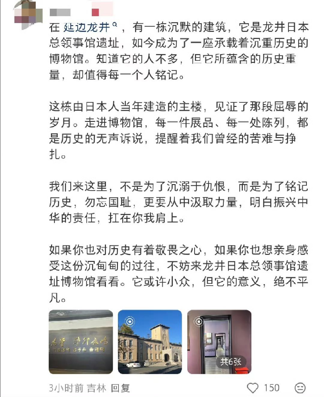 杨幂去了龙井日本遗址博物馆杨幂去旅游去了龙井日本遗址博物馆,这是一个很有意义的博物馆,里面纪念着对我们来说很重要的一段历史[拳头][拳头][拳头]