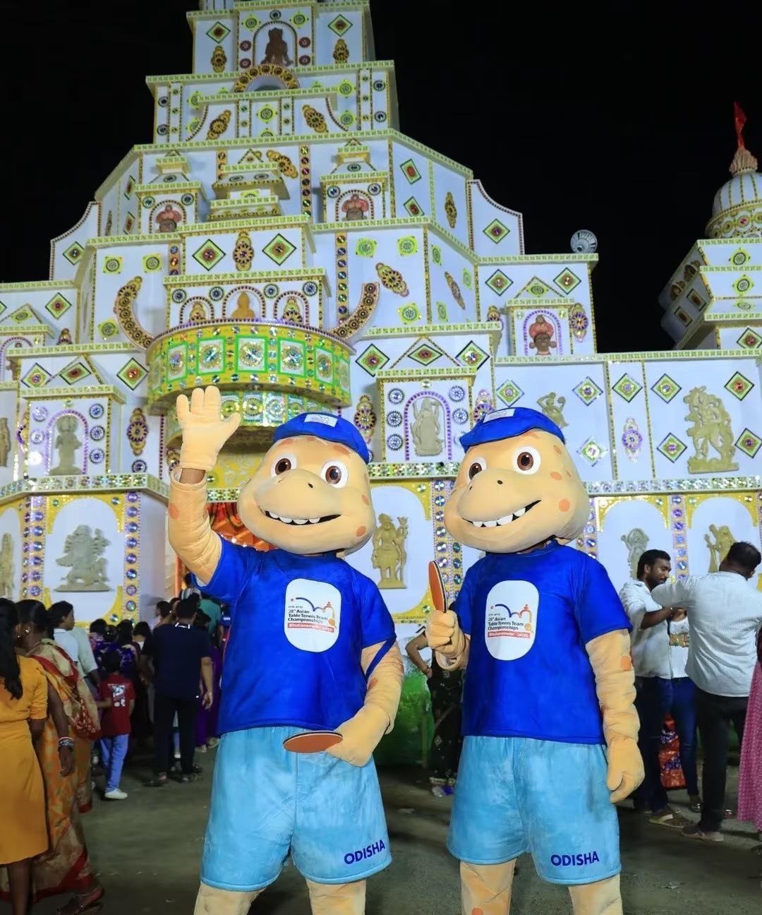 亚锦赛的吉祥物真的好另类, 这是新皮肤版的丹尼尔? 有一点像马里奥游戏中的龟, 估计也是因为喝了恒河水, 起了疹子! 亚锦赛的比赛环境希望能得到改善, 不能像以前一样, 比赛进行中, 空中落鸟粪, 这样对运动员的比赛影响很大, 希望国乒运动员可以 自备一些方便食物, 以备不时之需!
