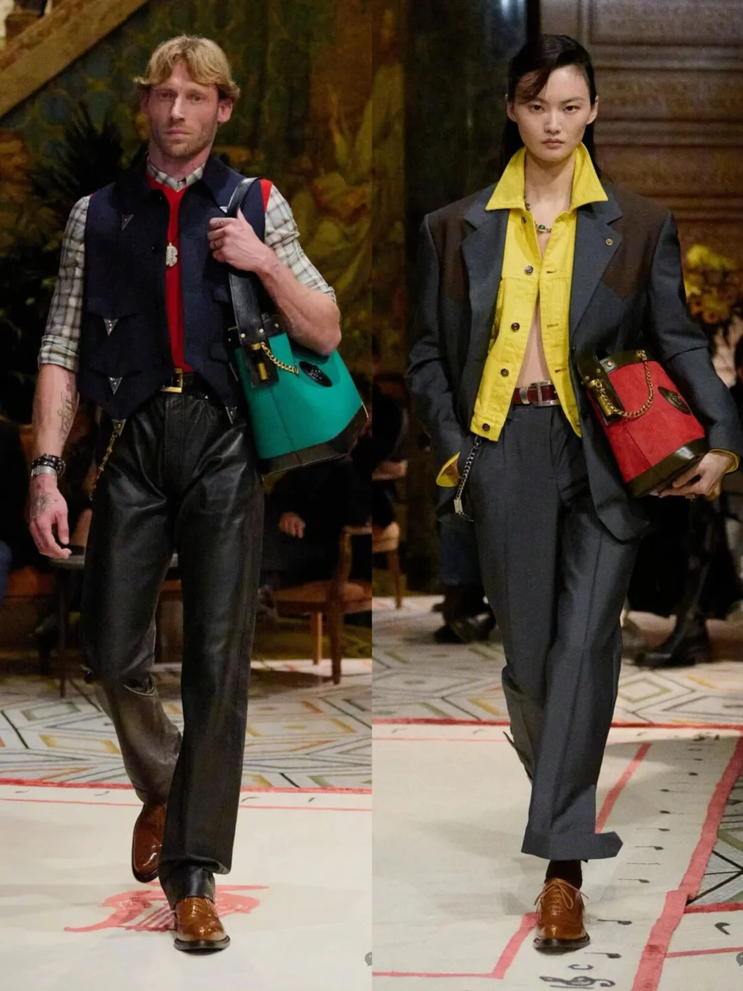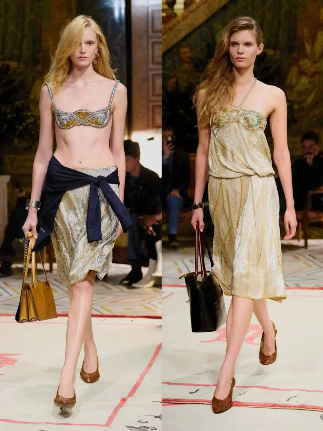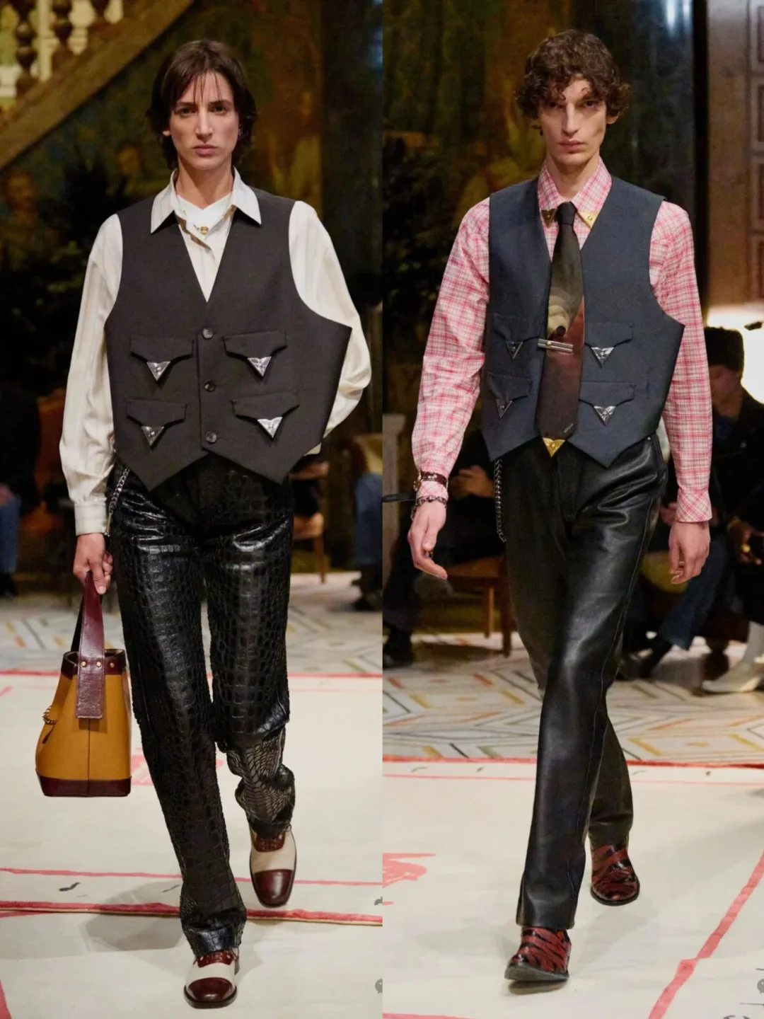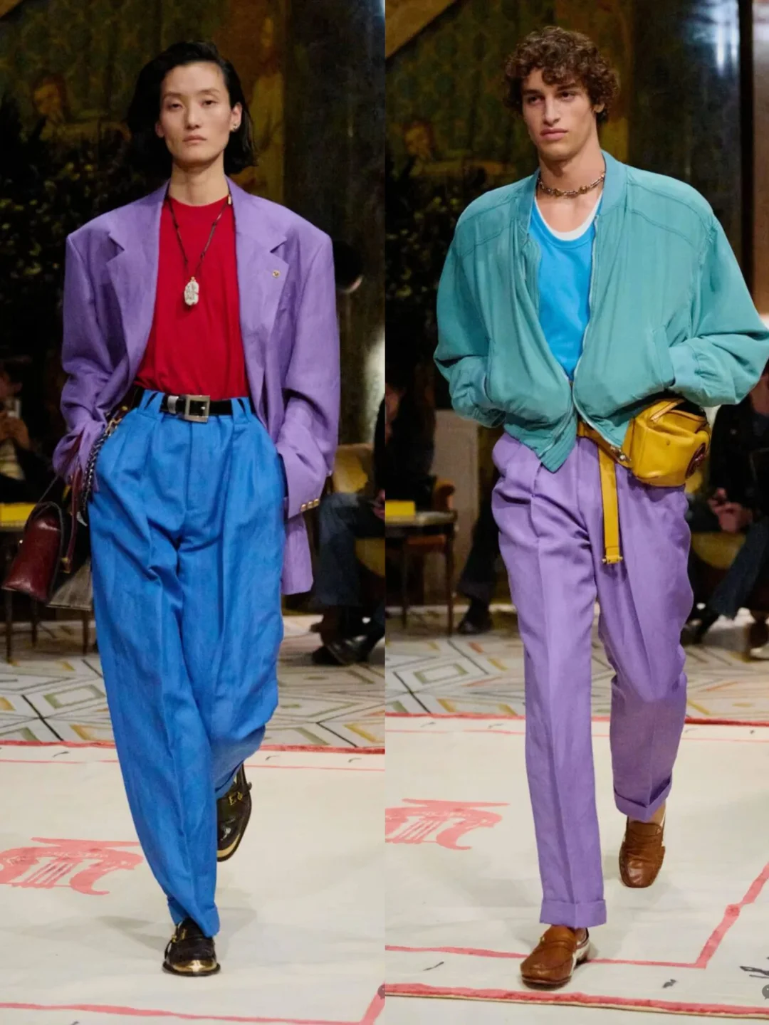系列以牛仔裤、T恤、肌肉背心和夹克为主角,打破范思哲过往的礼服传统,强调“松弛奢侈”的街头美学,将高饱和色调与复古元素融入基础款设计。呈现出自由随性感……素材来源于网络若有侵权请联系删除