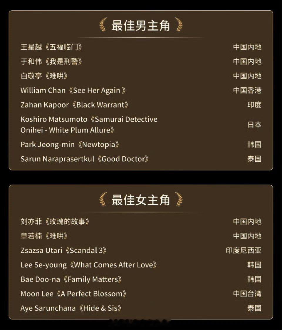 王星越和白敬亭提名了亚洲电视大奖最佳男主角!
