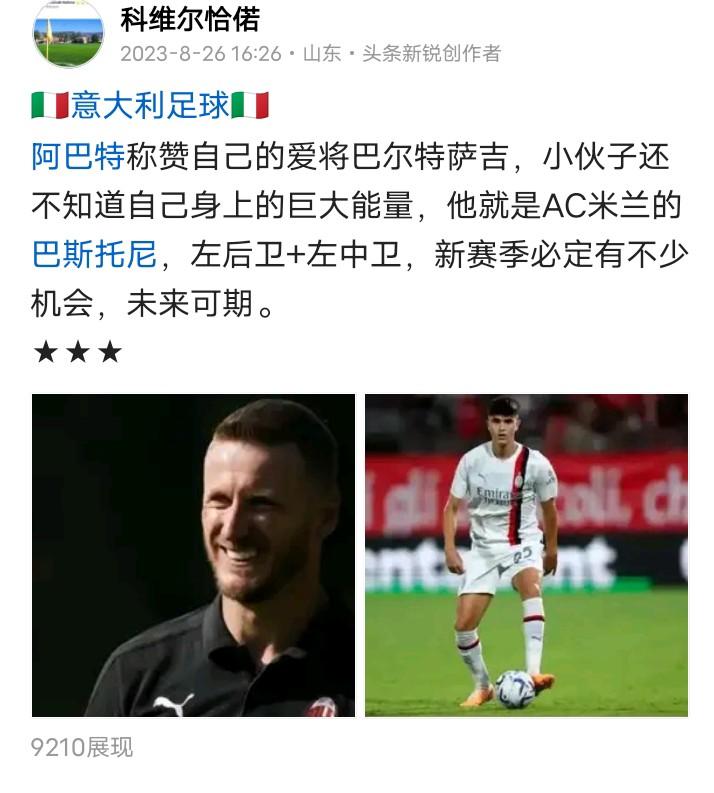 🇮🇹 巴尔特萨吉受到阿森纳的关注 如果他早点能遇到一个孔蒂似的教练 下一个巴