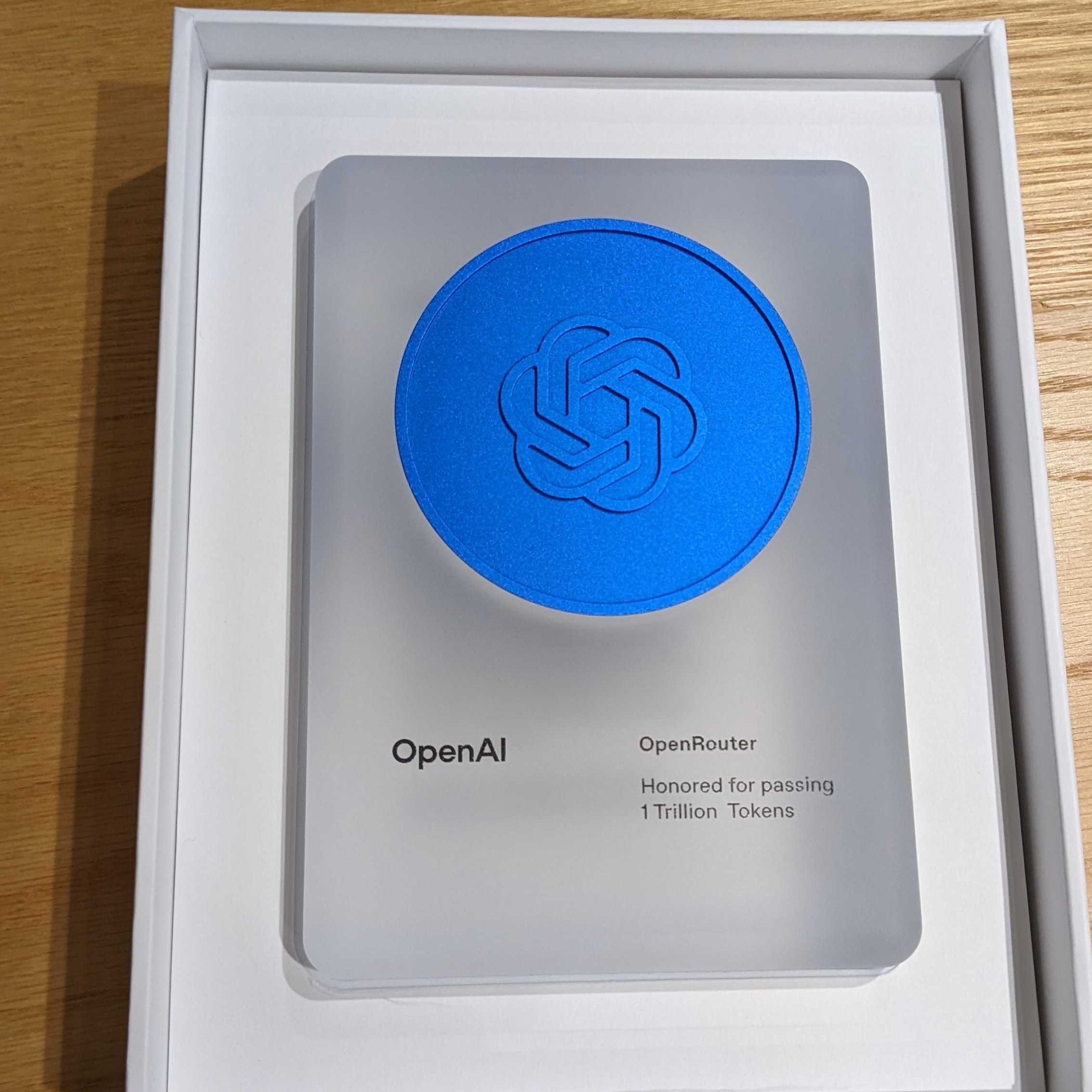 OpenAI给用了一万亿Token的用户发的纪念品。
