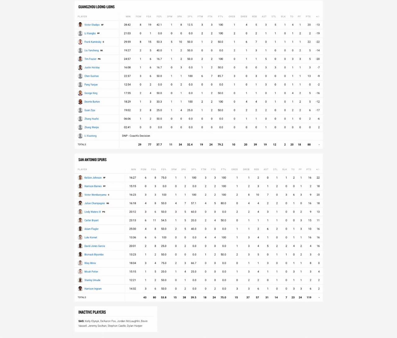 广东龙狮与马刺的季前赛,CBA状元陈国豪22分钟拿到14分3篮板,而他在CBA场均只有7分。年薪约550万人民币。 同样是状元的文班亚马今天只拿到9分。他的年薪约1687万美元。