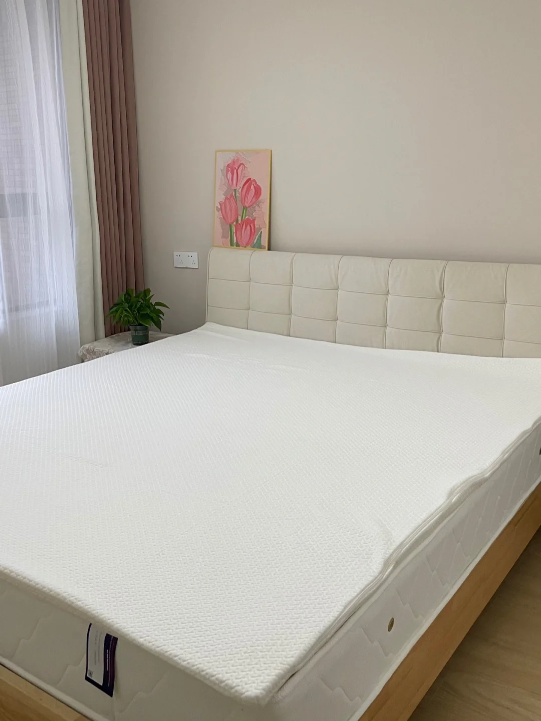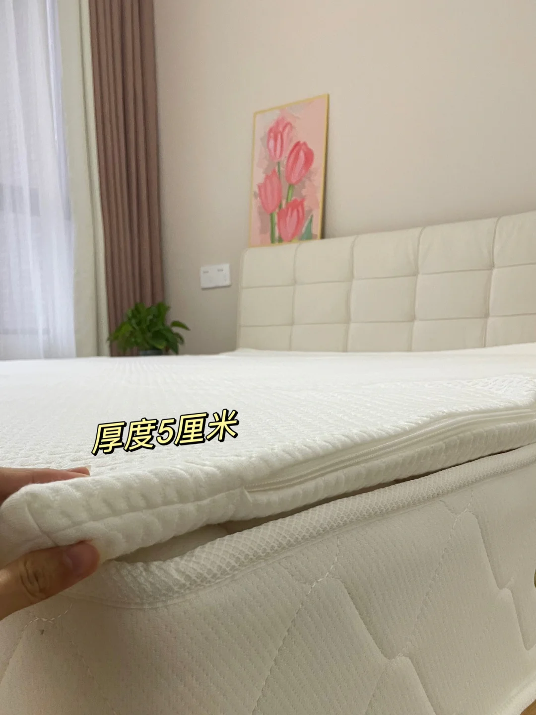 新家入住,当时想的是次卧,床垫就随便选了一个,后面父母来住了几天,睡得腰酸背痛,睡席梦思腰部没有支撑,就会睡的不舒服[萌萌哒R] 所以想着选择了在原来的床垫上再铺一张薄床垫,中和一下 这个乳胶床垫,薄薄的不仅不占地方,而且睡着很舒服,睡上去柔软又有支撑 5cm的高度刚刚好,肉眼可见的透气,脏了可以随时拆洗,很方便 好的床垫确实会让人有舒适的睡眠,早上起床也不会腰酸了!