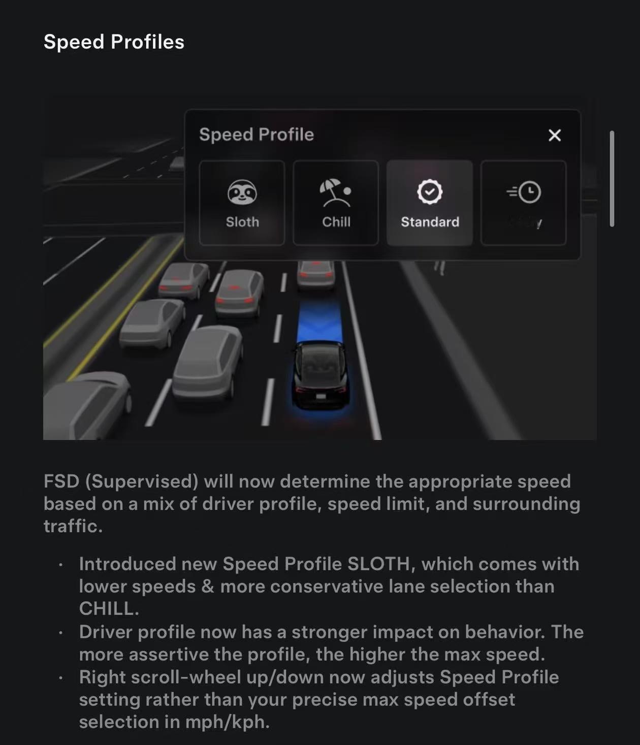 -FSD(有监督版)现在会结合驾驶员配置文件、限速和周围交通状况,来确定合适的行驶速度