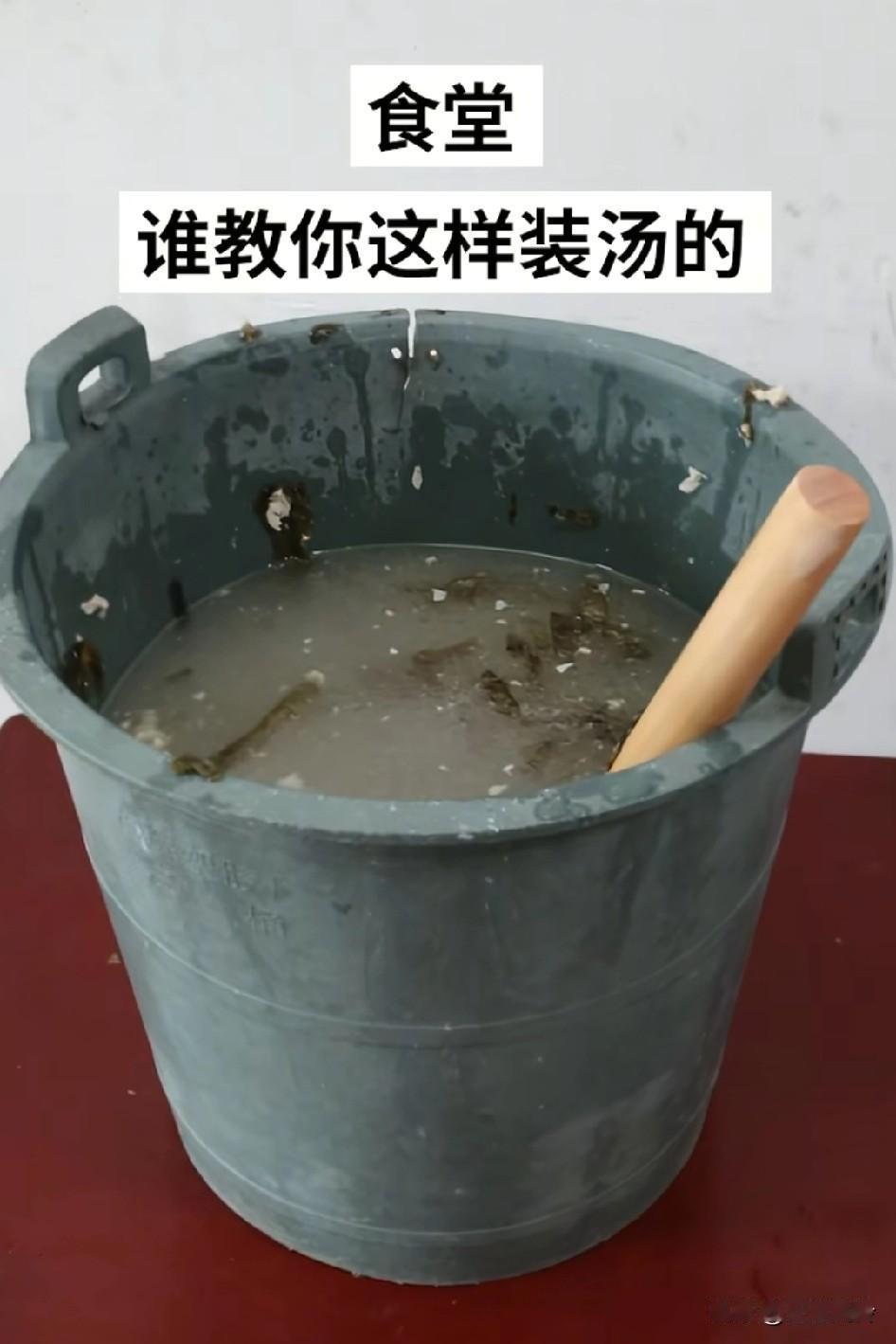 食堂用泔水桶打汤,桶身又破又旧脏兮兮像挑粪的桶,这汤有力气 校长:同学们今天吃潲水!食堂阿姨提来的时候:噜噜噜,奶奶二十年前,喂猪就用这桶,一毛一样,,后来被我爷用来挑猪粪了。这就是泔水桶吧,哪个学校敢用这个给学生装汤喝