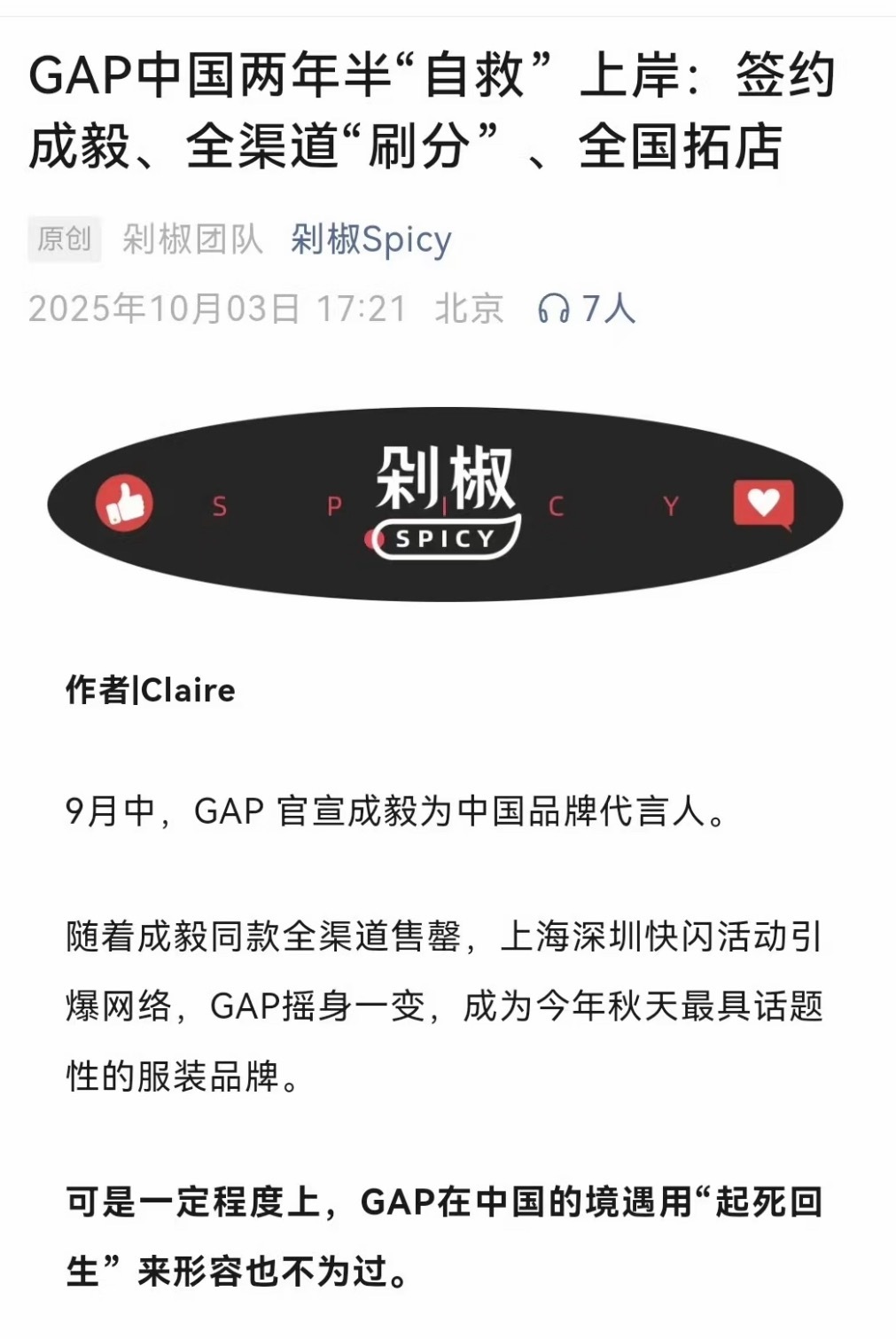 成毅真把GAP带火了~公众号辣评“起死回生”成毅=成亿