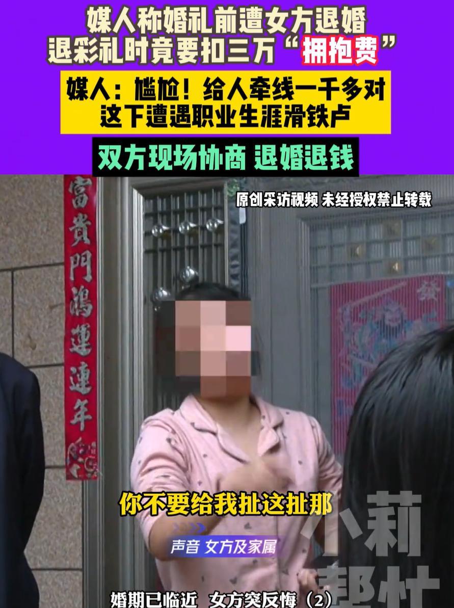 “这抱一下也太贵了!”河南平顶山,男子经媒人介绍,认识了一名女友,两人很快就订了婚,男子也是买了金首饰,给了彩礼,可临近婚礼一个月,女方突然要退婚,彩礼倒是能退,但要扣掉3万元“拥抱费”的,79岁的媒人都无语了:说了一辈子媒,第一次遇到这样的! 媒人大爷的介绍,两人相亲认识后相处的还不错,感情进展挺快,订了婚,买了金首饰,还给了彩礼,准备年底结婚,前后花了差不多二十万。 眼看婚期将至,女方突然说要退婚,理由是性格不合。退婚也不是不能理解,毕竟婚姻这事,勉强不来。可问题出在钱上 男方也没强求,只希望女方能把之前的花费退还。可没想到,女方虽然答应退钱,却要从二十万里扣掉三万。理由是什么?姑娘说,拍结婚照的时候,男方抱了她一下,这算是“拥抱费”,造成了她的损失 这话一出,连中间做媒的大爷都听不下去了。大爷今年七十岁,做媒做了一辈子,撮合过近千对夫妻,他说自己从没遇到过这样的事。他还特意跑去女方家里劝,说这样不合适,丢人。结果劝不动,还差点挨揍 其实从情理上讲,退婚的确可以,但凡事得有个分寸。既然没领证,财产往来就要讲个清楚。订婚时给的金首饰和彩礼都属于婚约性质的赠与,不成婚就该如数退还 可要是因为一次拥抱就要索赔三万,这就成了明摆着的“情感账”变“生意账”,把感情算成了合同 这件事也提醒很多正在谈婚论嫁的人,金钱往来要清清楚楚,大额支出最好留有凭证,不是为了计较,而是对彼此负责。如果感情真的走不下去,至少在经济上不互相亏欠 #女方悔婚退彩礼时要扣3万拥抱费#