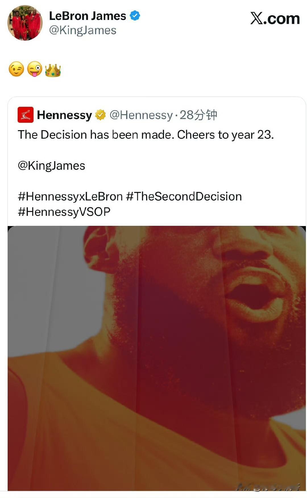 太恶心人了!!!詹姆斯决定为轩尼诗代言! 詹姆斯“决定2”提前公布,果然是一场空,不知道是谁搞了这个噱头,最终结果就是詹姆斯成为轩尼诗的代言人,没别的了。 不知道大家知道这个结果后是何感想,话说是不是稍微有点恶心人了,虽然詹姆斯没有宣布退役对NBA和球队来说是件好事,他们可以继续利用他来赚一波,但是用了“决定2”就有点尴尬了,毕竟这是詹姆斯用来宣布重大决定的方法,如今用到一瓶白兰地酒上,多少还是觉得有点无聊,尽管他们都因此狠狠的赚了一大波。 不过没有宣布退役对很多球迷来说这个结局是好的,球迷们可以继续看詹姆斯的第23个赛季了。 而詹姆斯和轩尼诗合作之后,他又得到了一个大合同,品牌方也是赚大了,双方共赢的局面。 詹姆斯