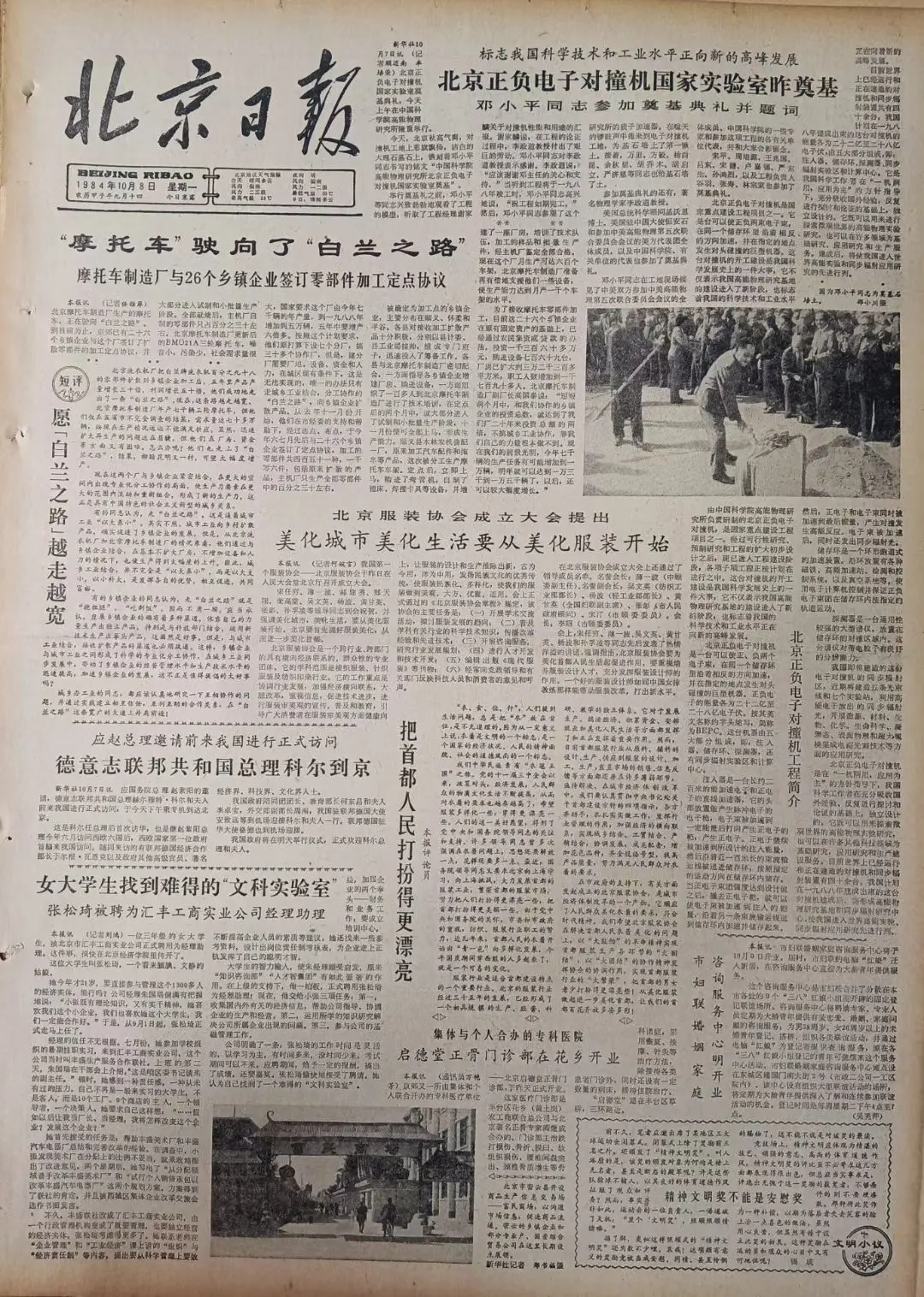 老报上的今天---四十一年前的1984年10月8日《北京日报》头版报道...