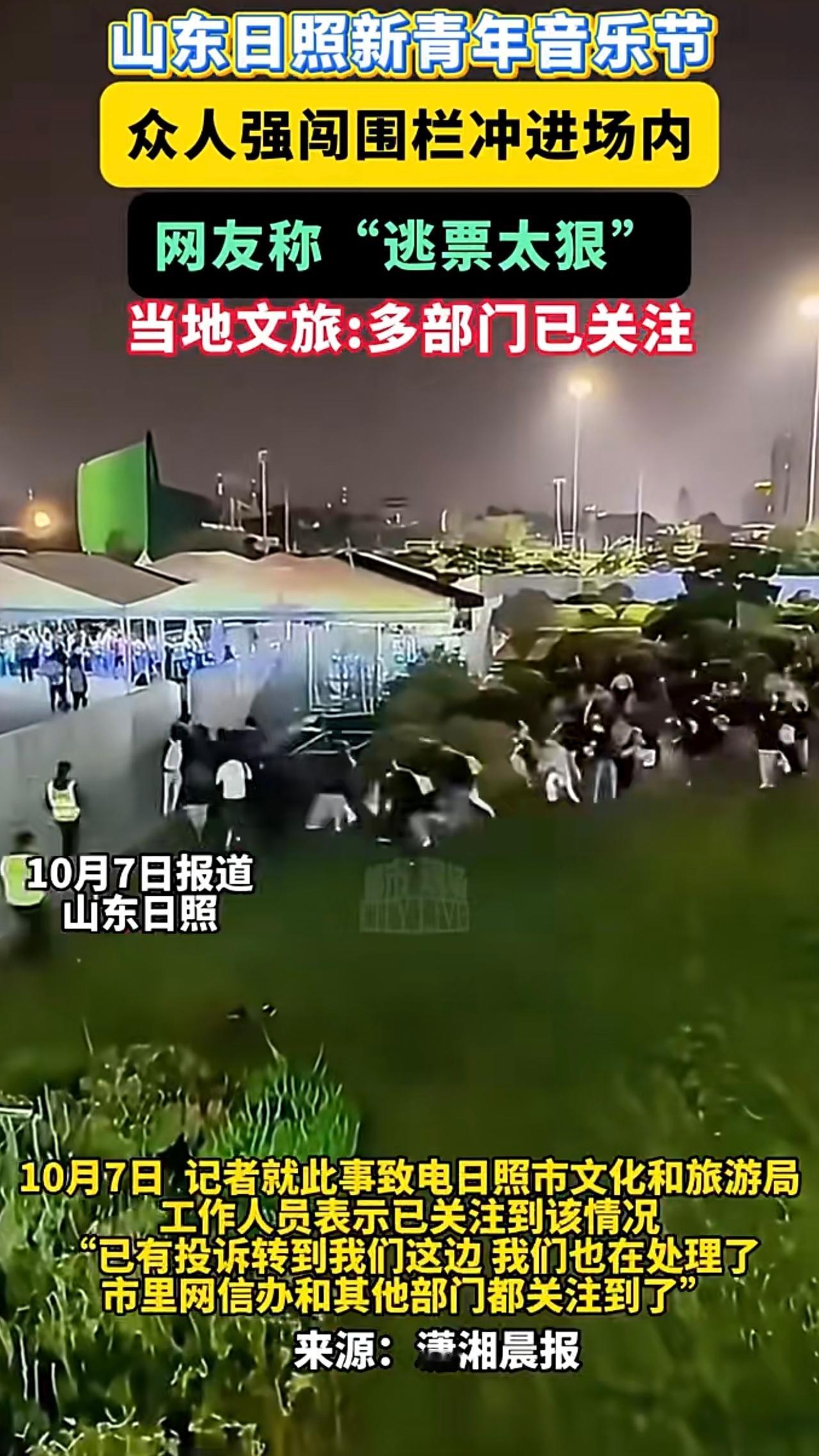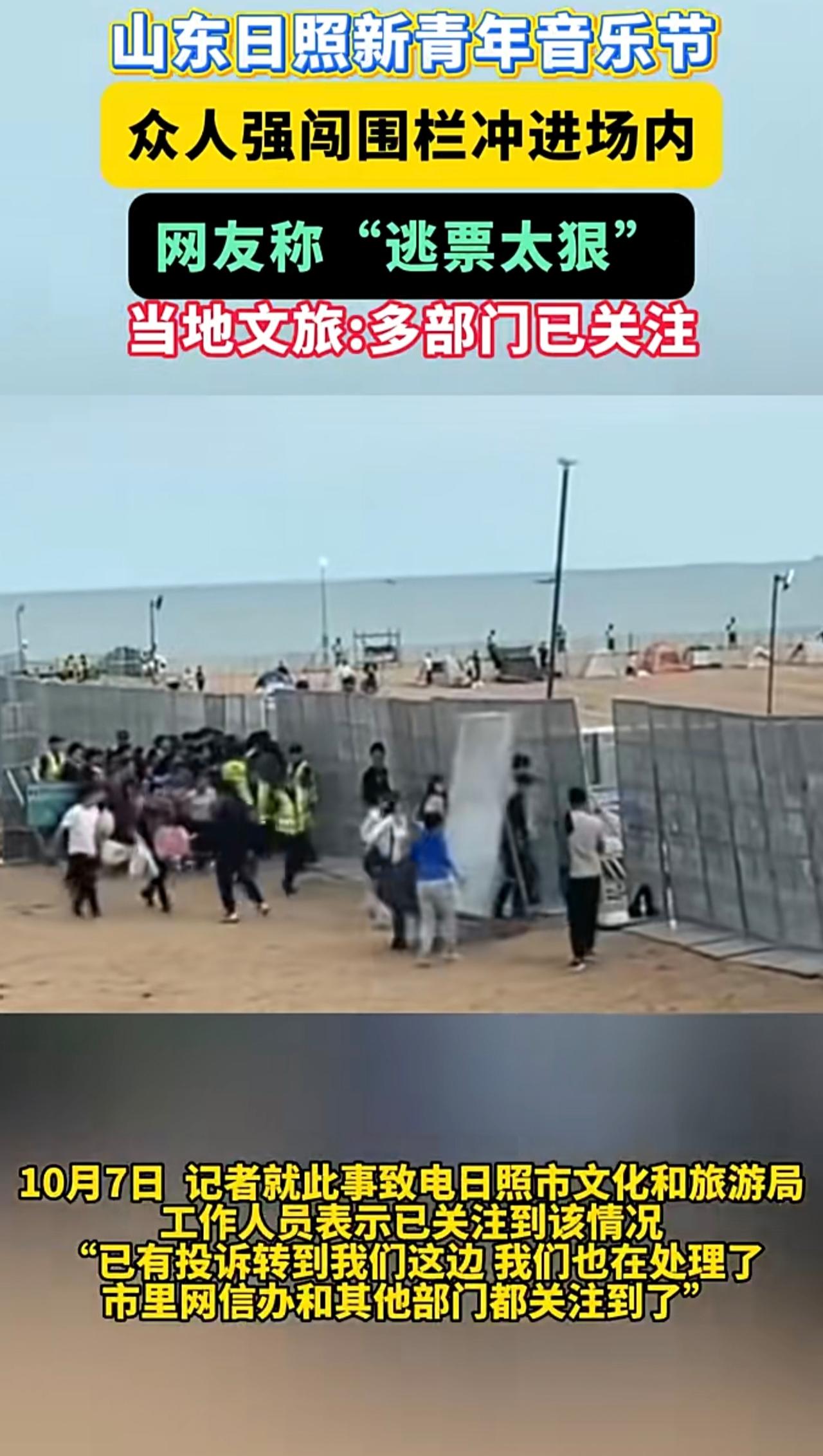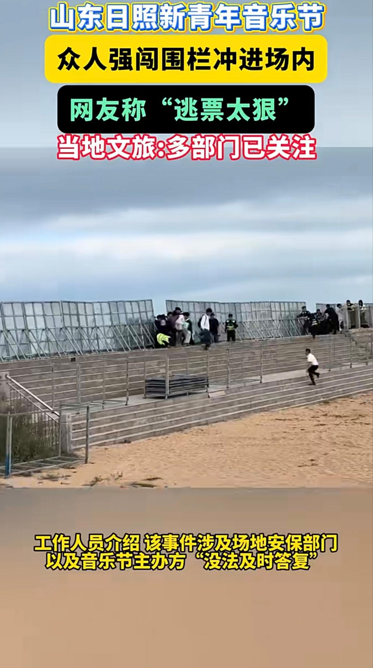 山东日照新青年音乐节 众人强闯围栏冲进场内 网友称“逃票太狠”