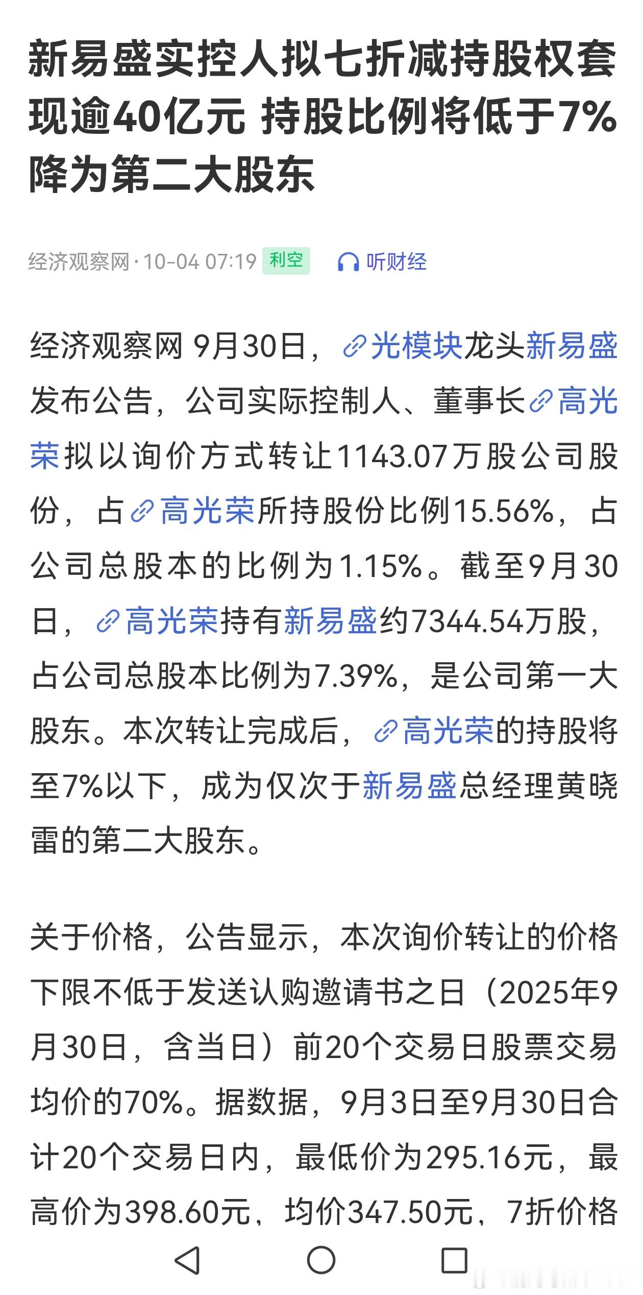 中际旭创提减持20亿,新易盛拟转让40亿,小散帮助老板致富。