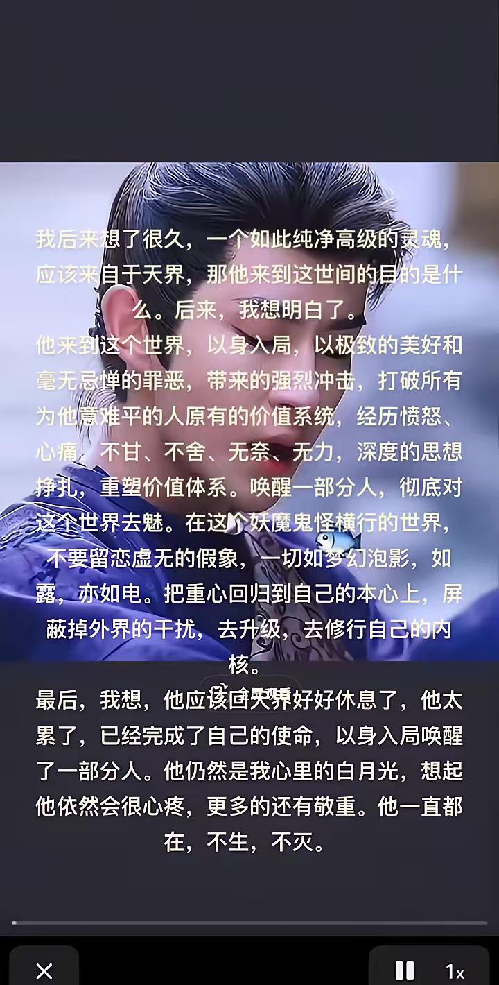他来过,如一束光,照亮了世界的虚妄。 我曾以为这样纯净的灵魂来自天界,后来才明白,他来到人间,是为了以身入局。 他用极致的美好与极致的罪恶,制造强烈的冲击,打碎我们原有的价值体系。 在愤怒、心痛、不甘与无奈之后,我们被迫重塑自我,学会对世界去魅。 于是我懂得,与其留恋泡影,不如回归本心,屏蔽噪音,修炼内核。 他完成了使命,或许已回到天界休息。而他留下的,是一种看见真相的能力。 真正的白月光,不是供我们仰望的神话,而是推动我们向内行走的火种。 你心中的那束光,又照亮了你哪段旅程?欢迎在评论区分享你的故事。